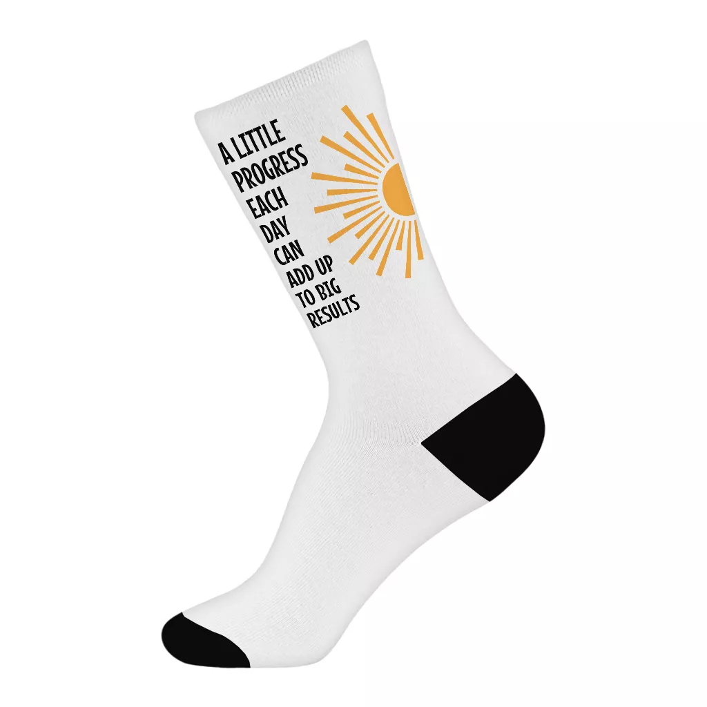 A Little Progress Each Day Can Add Up To Big Results Unisex Socks – Mental Health Socks – Motivational Crew Socks