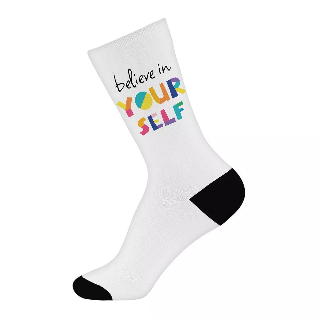 Believe in Yourself Unisex Socks – Inspirational Print Socks – Motivational Quote Crew Socks
