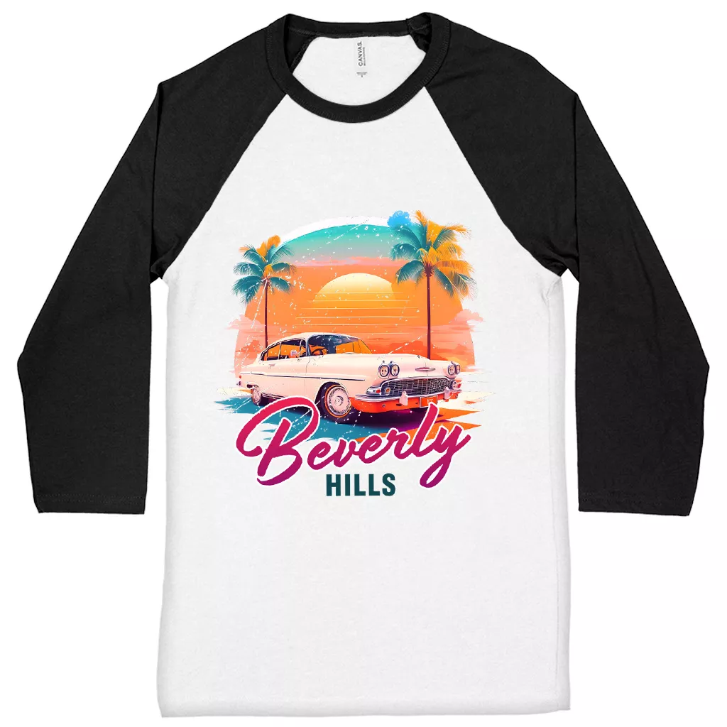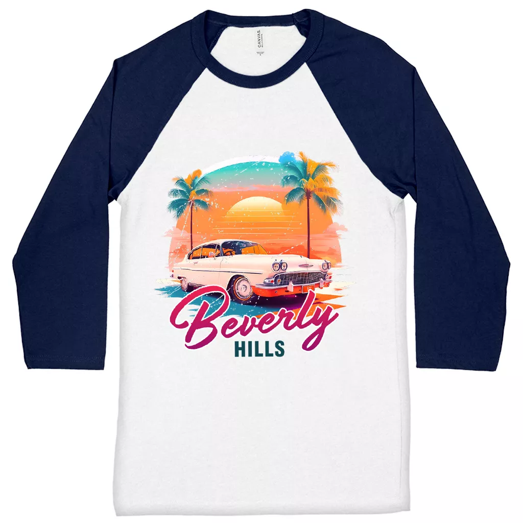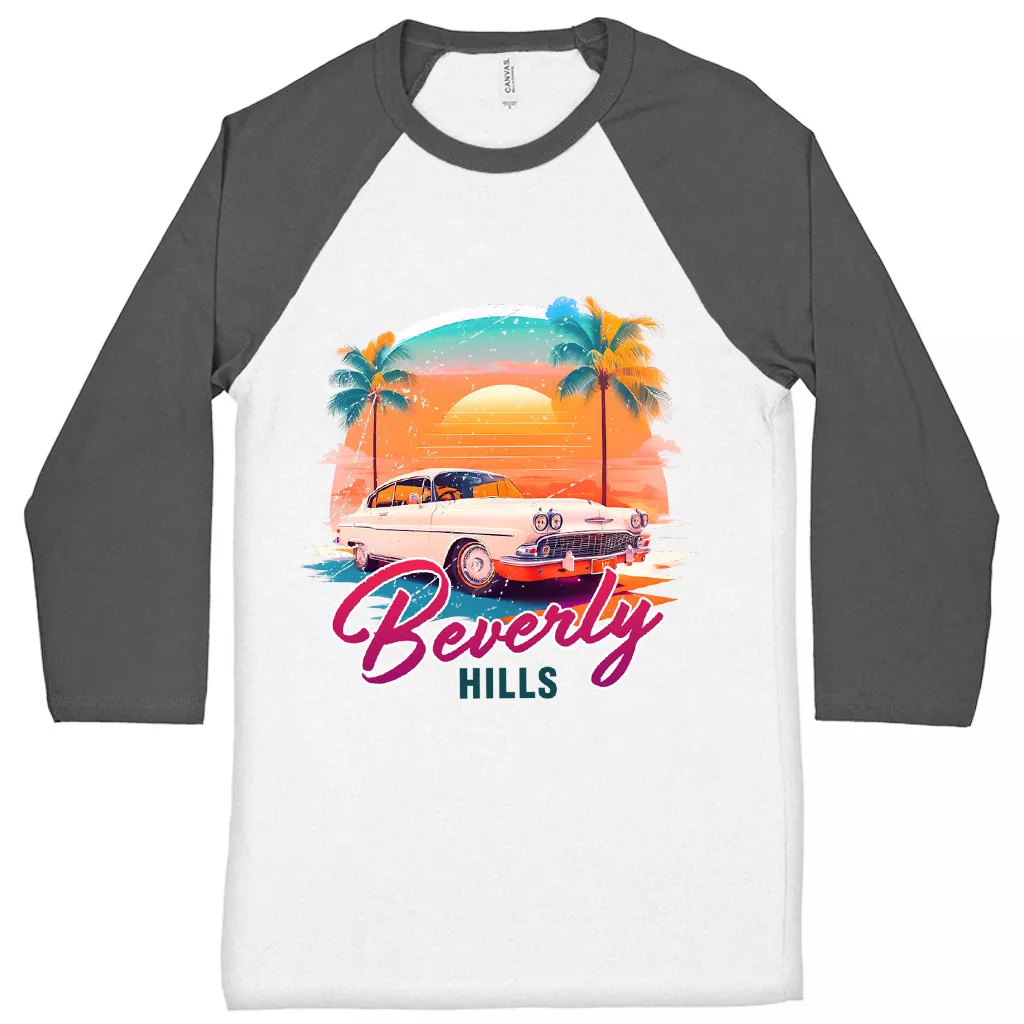 Beverly Hills Baseball T-Shirt – Retro Car 3/4 Sleeve – California Raglan Jersey Shirt