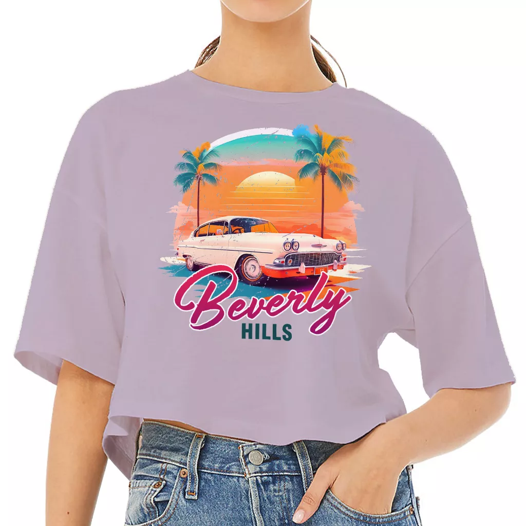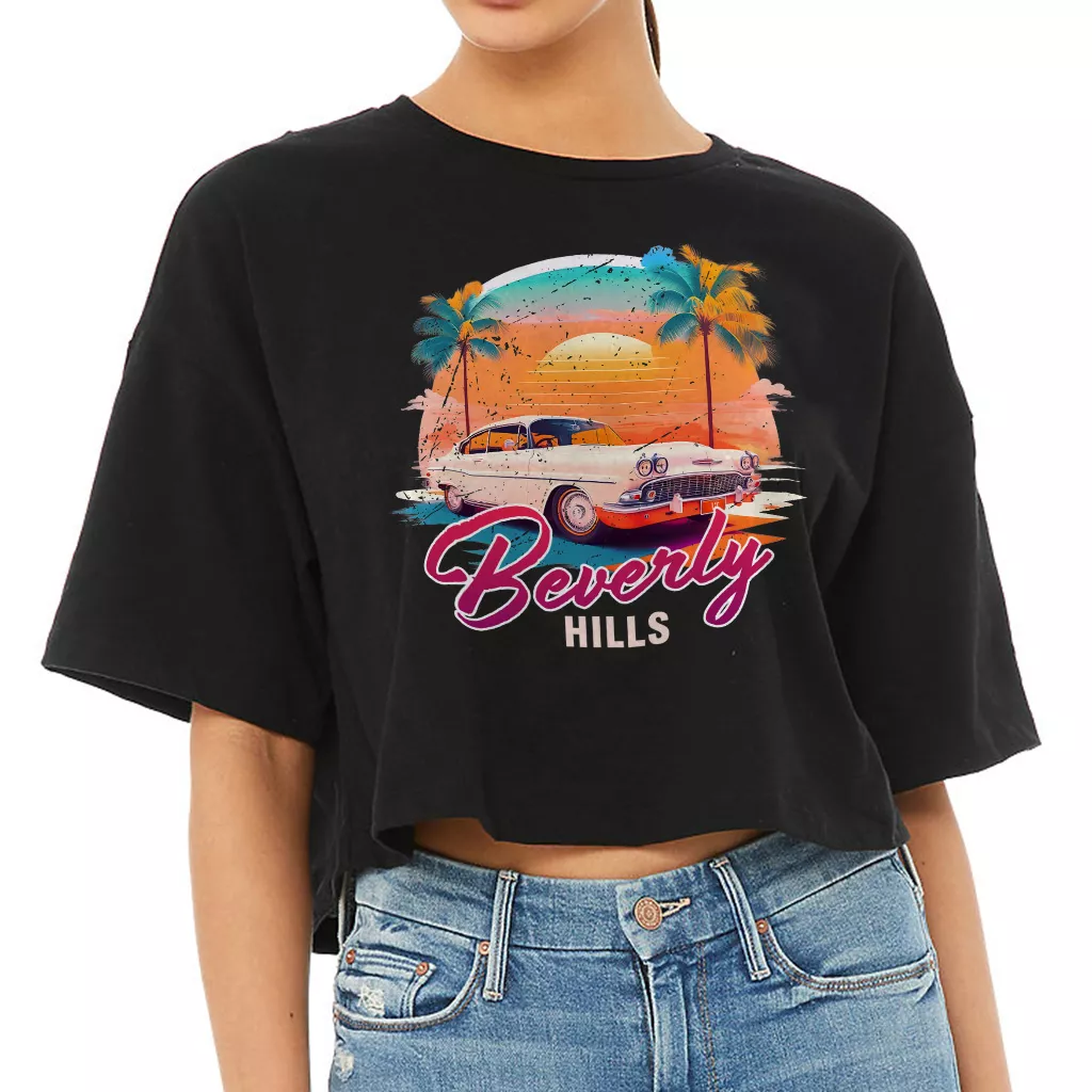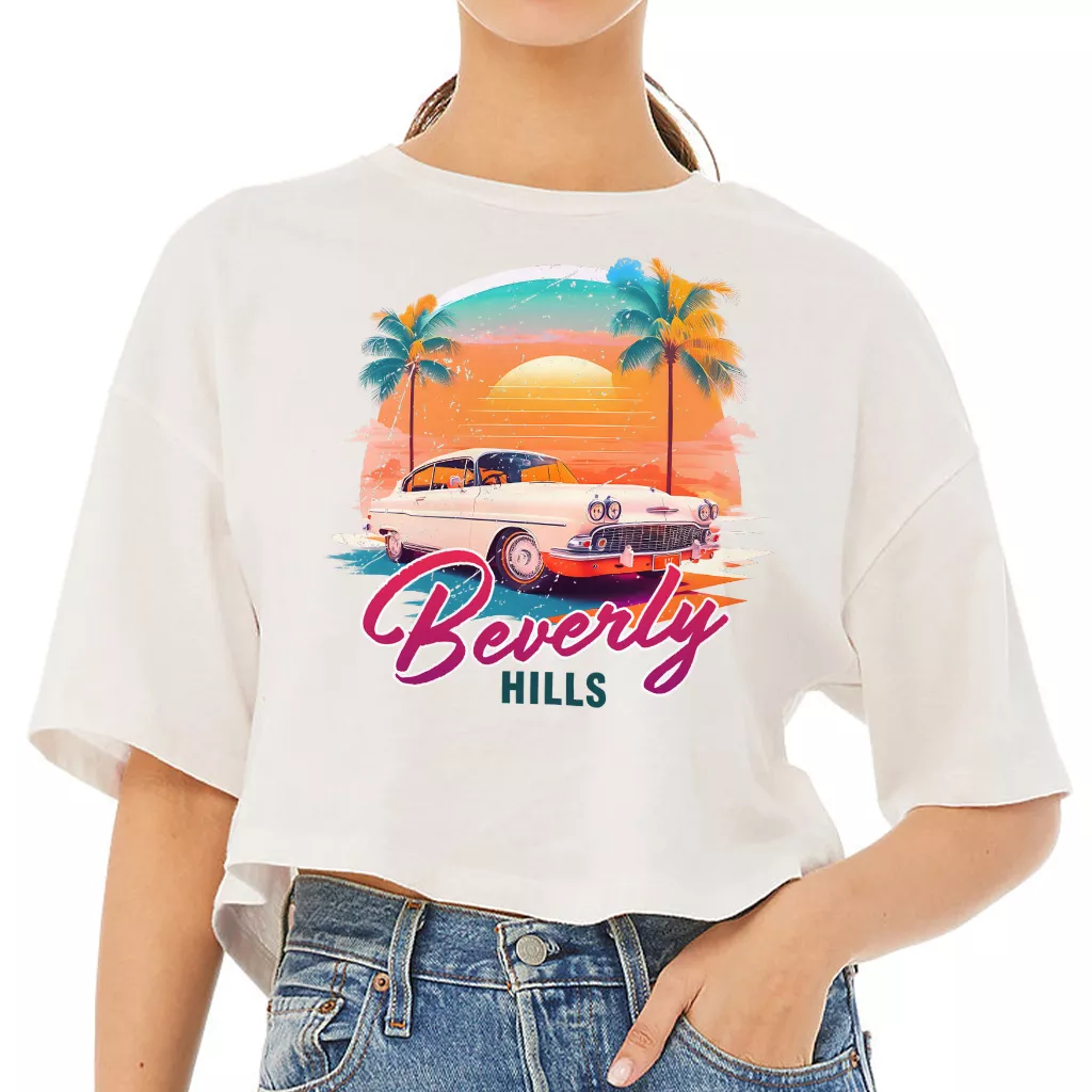 Beverly Hills Cropped T-Shirt – Retro Car Trendy Tee – California Women’s Basic T-Shirt