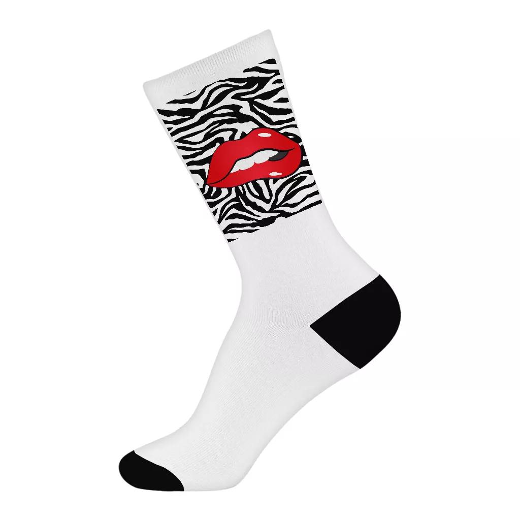 Biting Lip Zebra Print Unisex Socks – Fashion Print Socks – Trendy Design Crew Socks