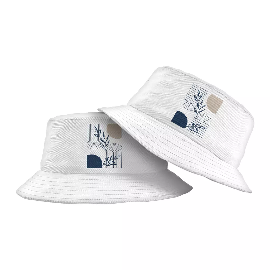 Boho Botanical Bucket Hat – Mid Century Design Trendy Hat – Abstract Line Sun Hats