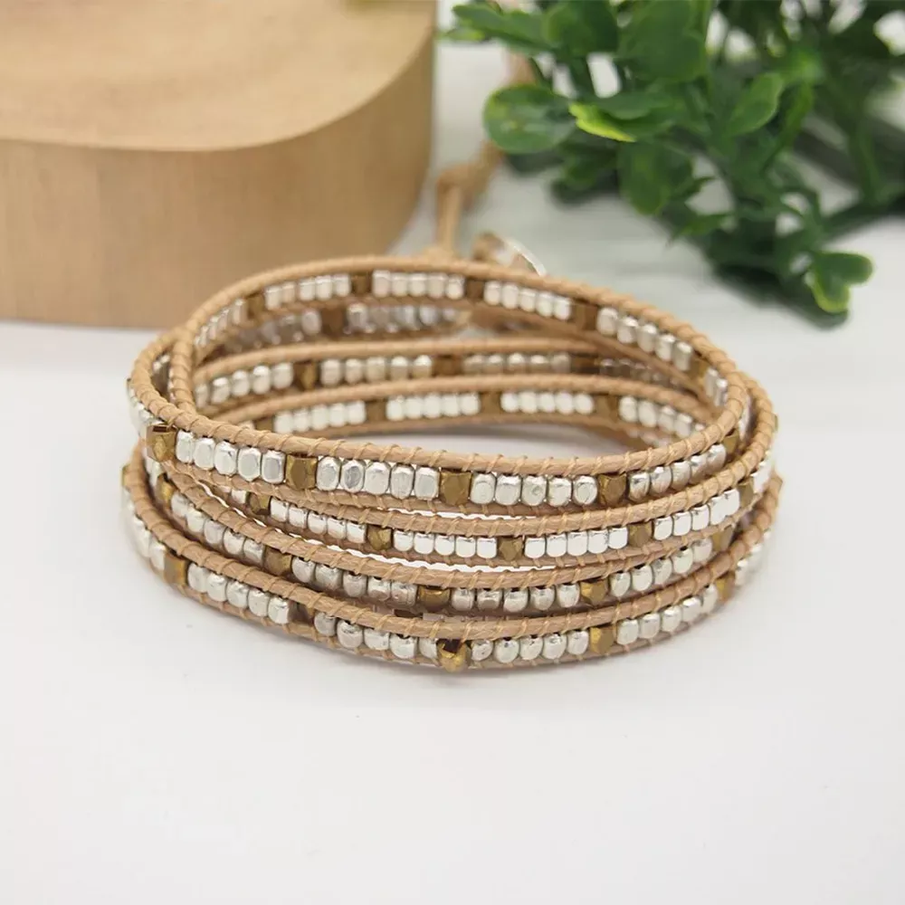 Boho Brass Beaded 5-Wrap Adjustable Bracelet for Men and Women
