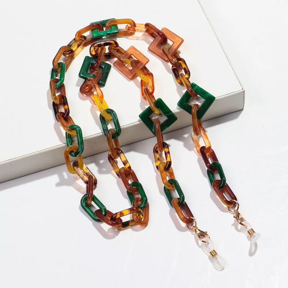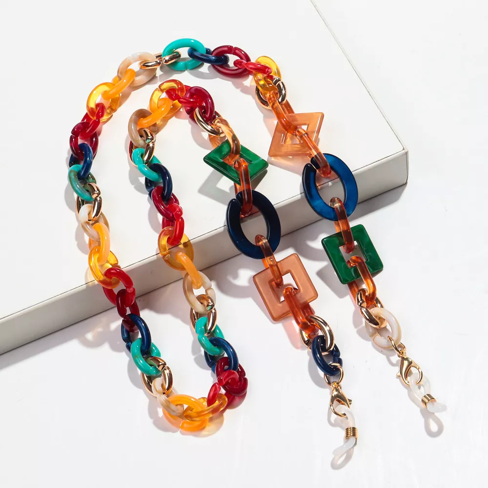 This colorful acrylic chain isn’t just an accessory—it’s an expression of your personality. Whether you’re running errands, working from a café, or enjoying a sunny day outdoors, this chain keeps your eyewear both secure and stylish. It’s especially perfect during spring and summer, when fashion meets function in the most colorful way. With its artistic design and eye-catching hues, this piece turns even the simplest sunglasses into a fashion moment.