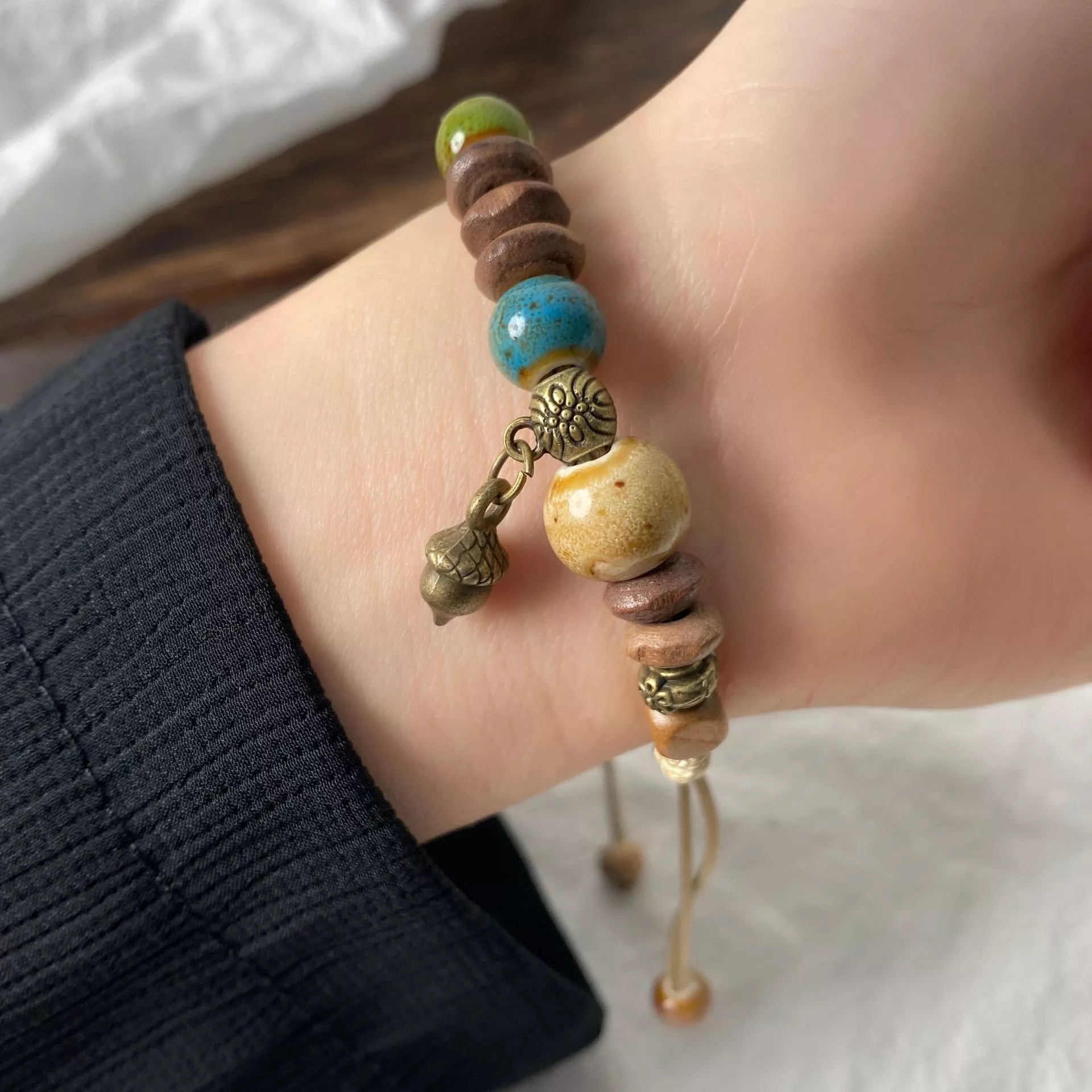 • Natural & Eco-friendly Materials: Featuring ceramics and wood, this bracelet is both stylish and sustainable.