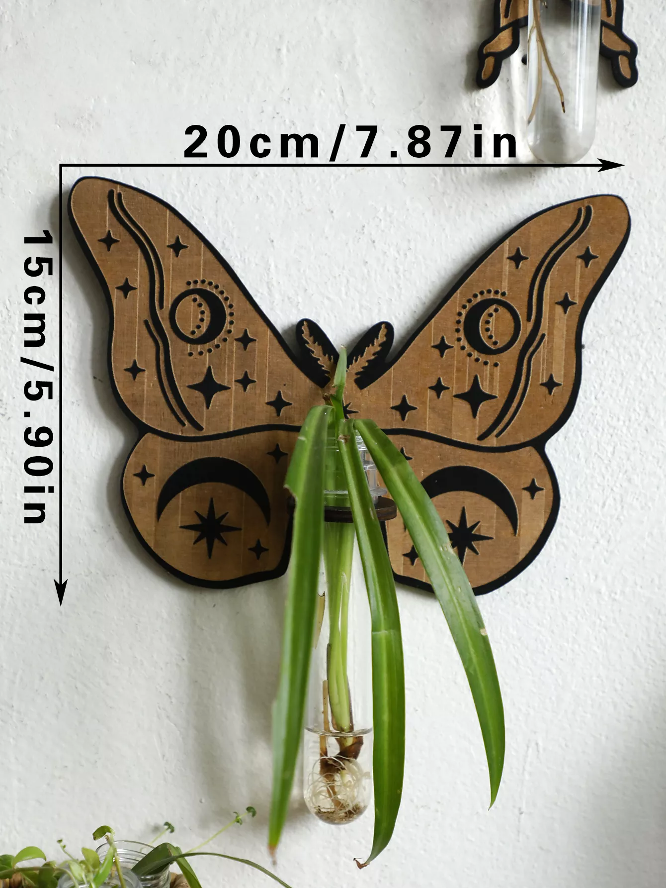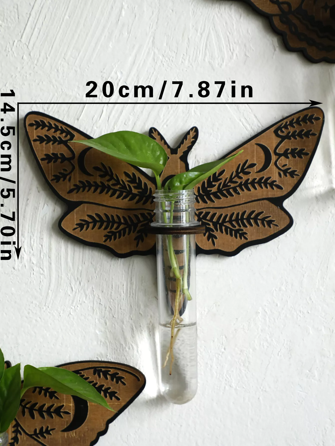 Crafted from high-quality pine wood, this propagation station blends seamlessly with any home decor, especially in bedrooms, study rooms, or living rooms. The butterfly-inspired design adds a delicate yet rustic charm that complements your plants beautifully. The plastic tubes are ideal for hydroponic growth, allowing you to watch your plants grow in water, creating a fascinating, modern display of nature right in your home.