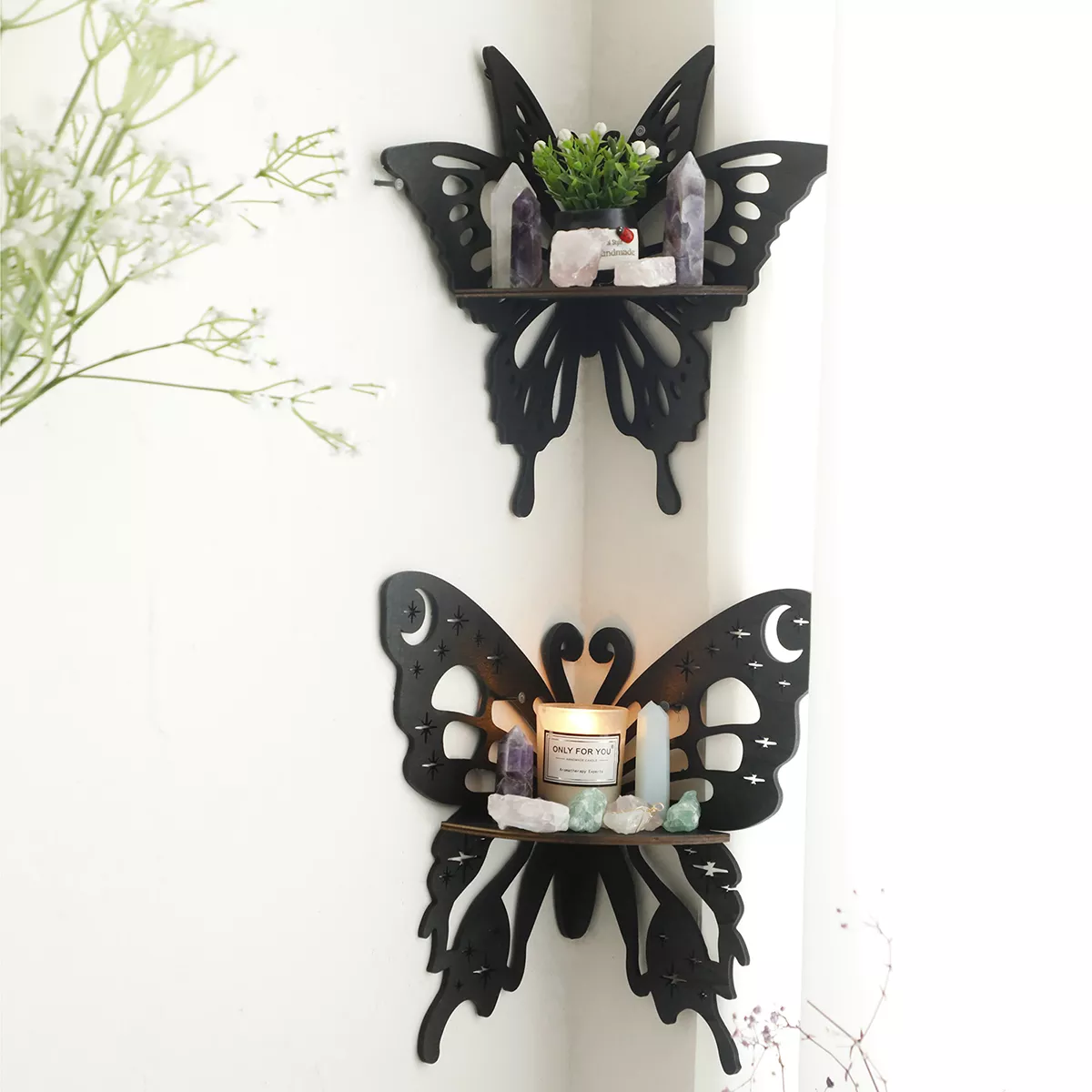 Transform any room into a calming oasis with the beautiful and functional Butterfly Wooden Corner Shelf. Perfect for those who appreciate boho style, this unique shelf not only serves as a practical storage solution but also as a striking piece of wall art. Crafted with durable wood and featuring an elegant butterfly design, this floating corner shelf adds a touch of charm and sophistication to your home decor. Whether you’re showcasing crystals, essential oils, or small decorative items, this shelf is an ideal way to make the most of your space while creating a relaxing and aesthetic atmosphere.