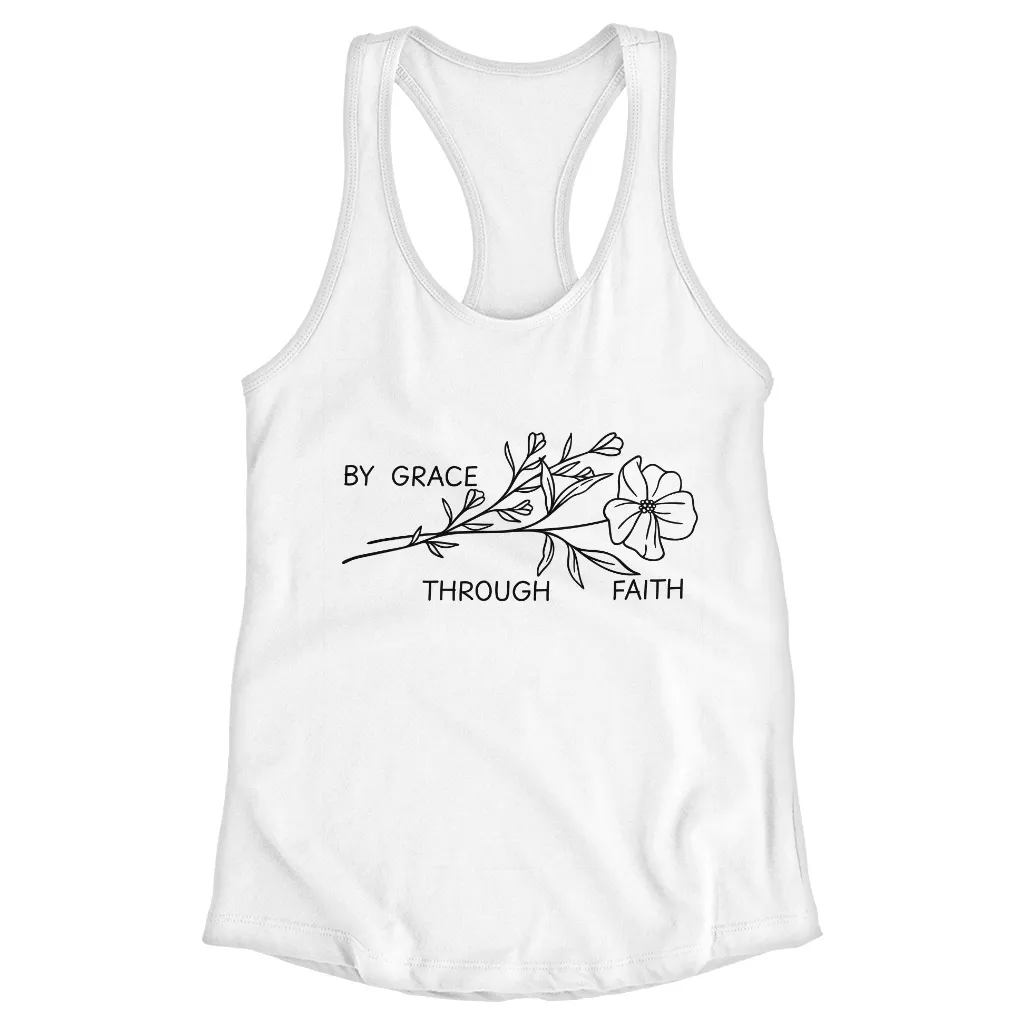 By Grace Through Faith Racerback Tank – Minimalist Christian Tank Top – Faith Quote Tank