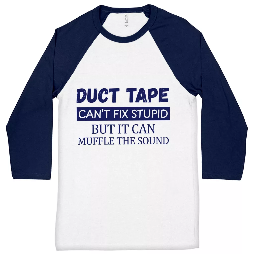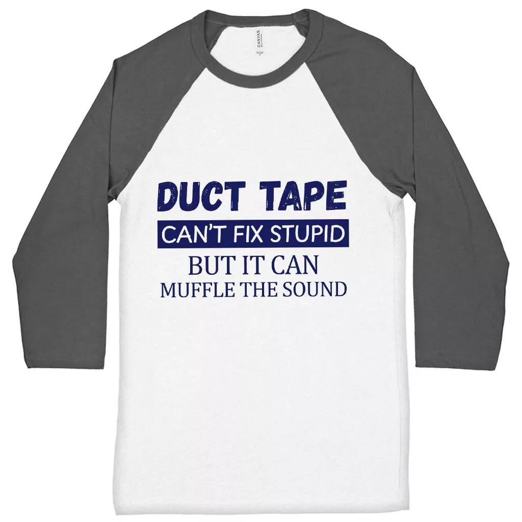 Can’t Fix Stupid Baseball T-Shirt – Sarcasm 3/4 Sleeve – Duct Tape Funny Raglan Jersey Shirt