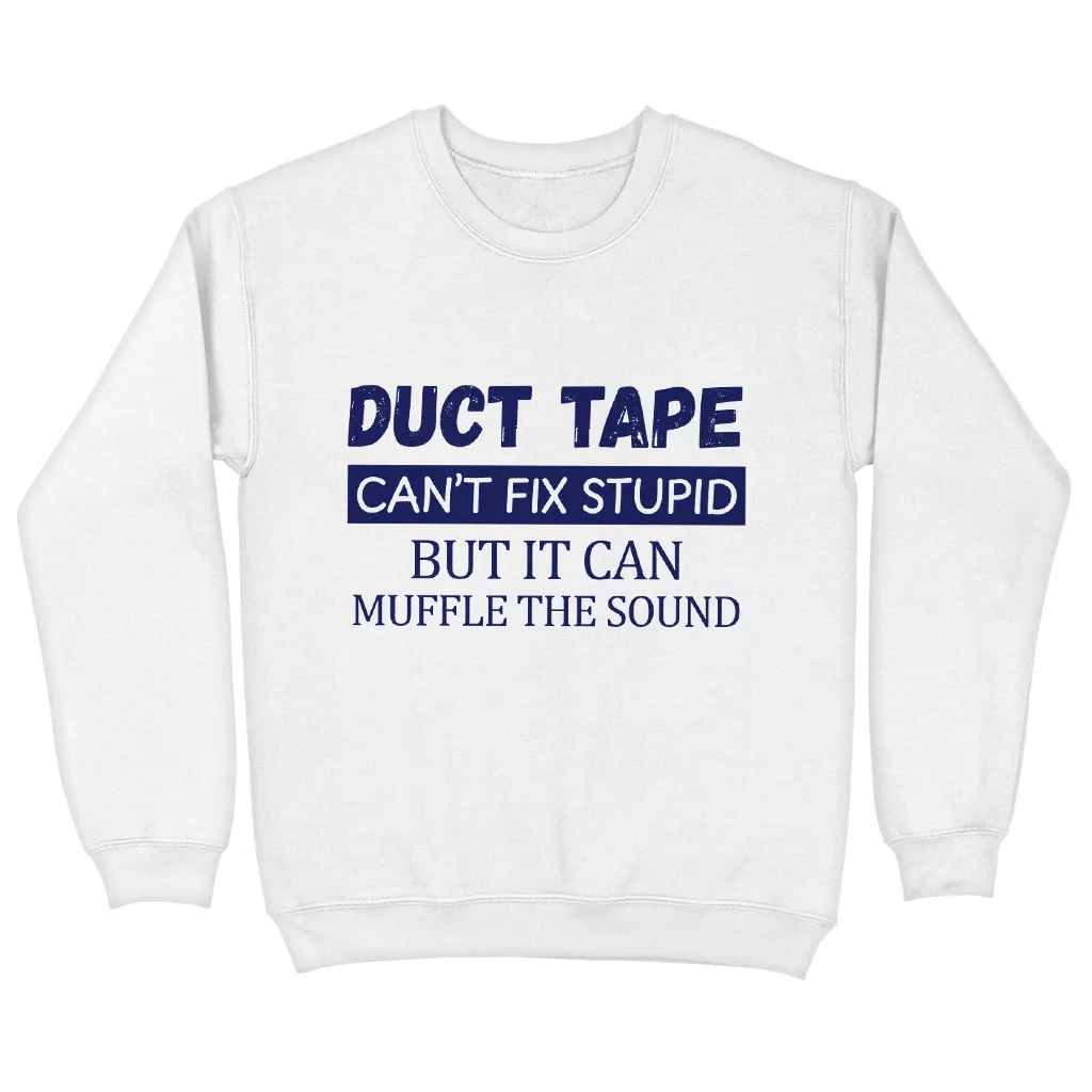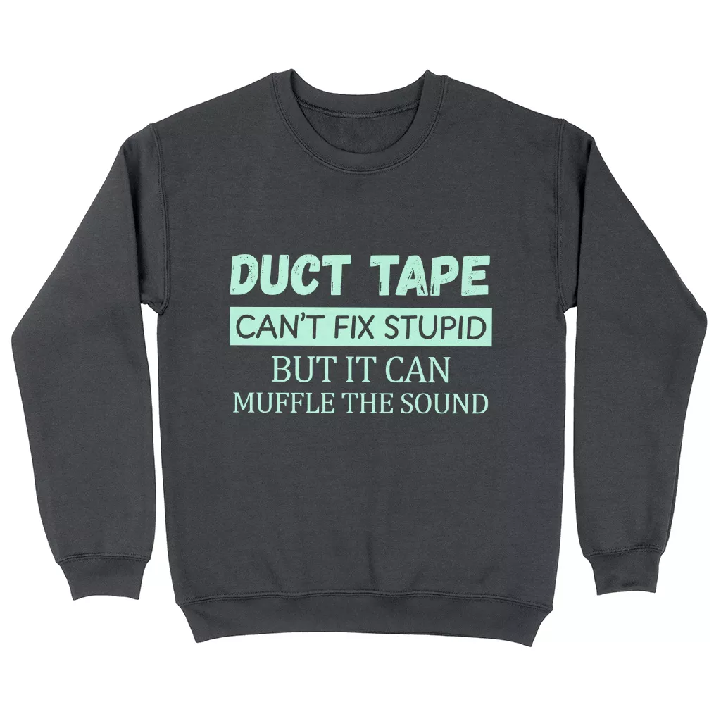 Can’t Fix Stupid Sweatshirt – Duct Tape Funny Crewneck Sweatshirt – Sarcasm Unisex Sweatshirt