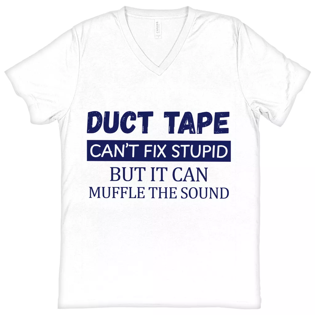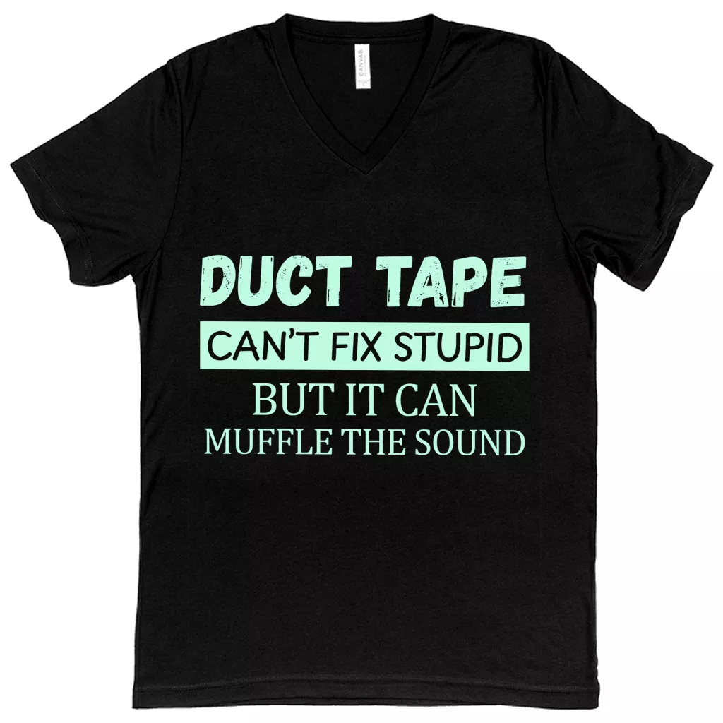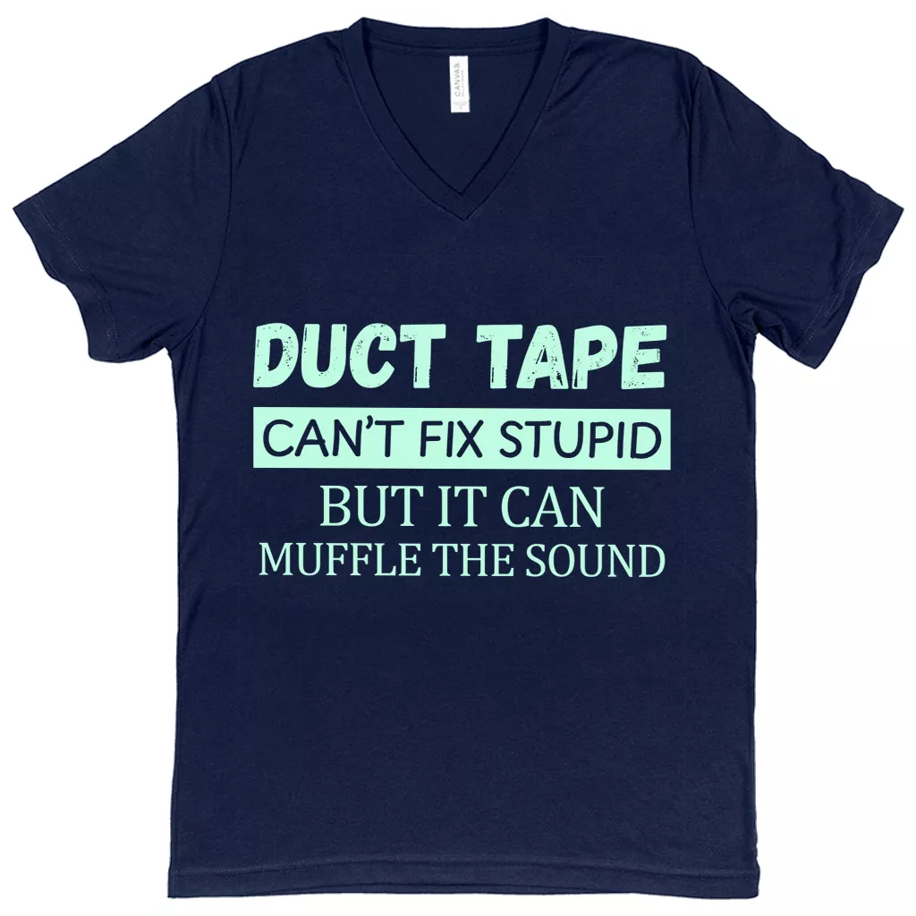 Can’t Fix Stupid V-Neck T-Shirt – Sarcasm Basic T-Shirt – Duct Tape Funny Tee