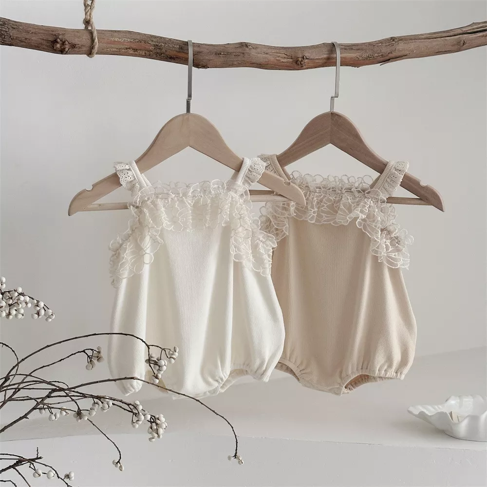 Summer Baby Suspenders Bodysuit with Ruffled Lace for Girls 0-2Y
