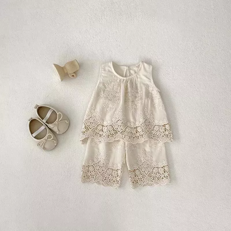 Summer Baby Girls Lace Vest and Embroidered Pants Set
