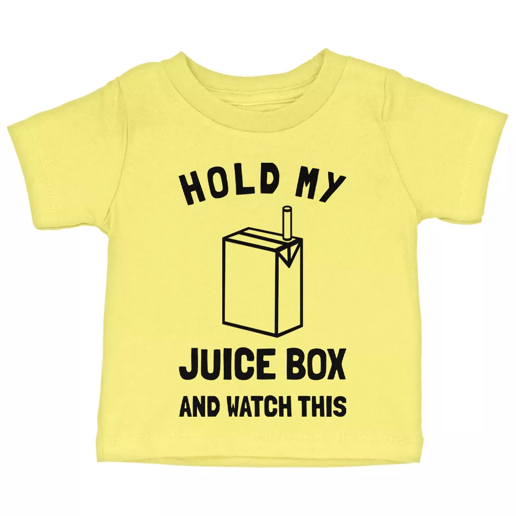 Hold My Juice Box and Watch This Baby T-Shirt – Funny Graphic T-Shirt for Kids – Cute Print Short Sleeve Tee