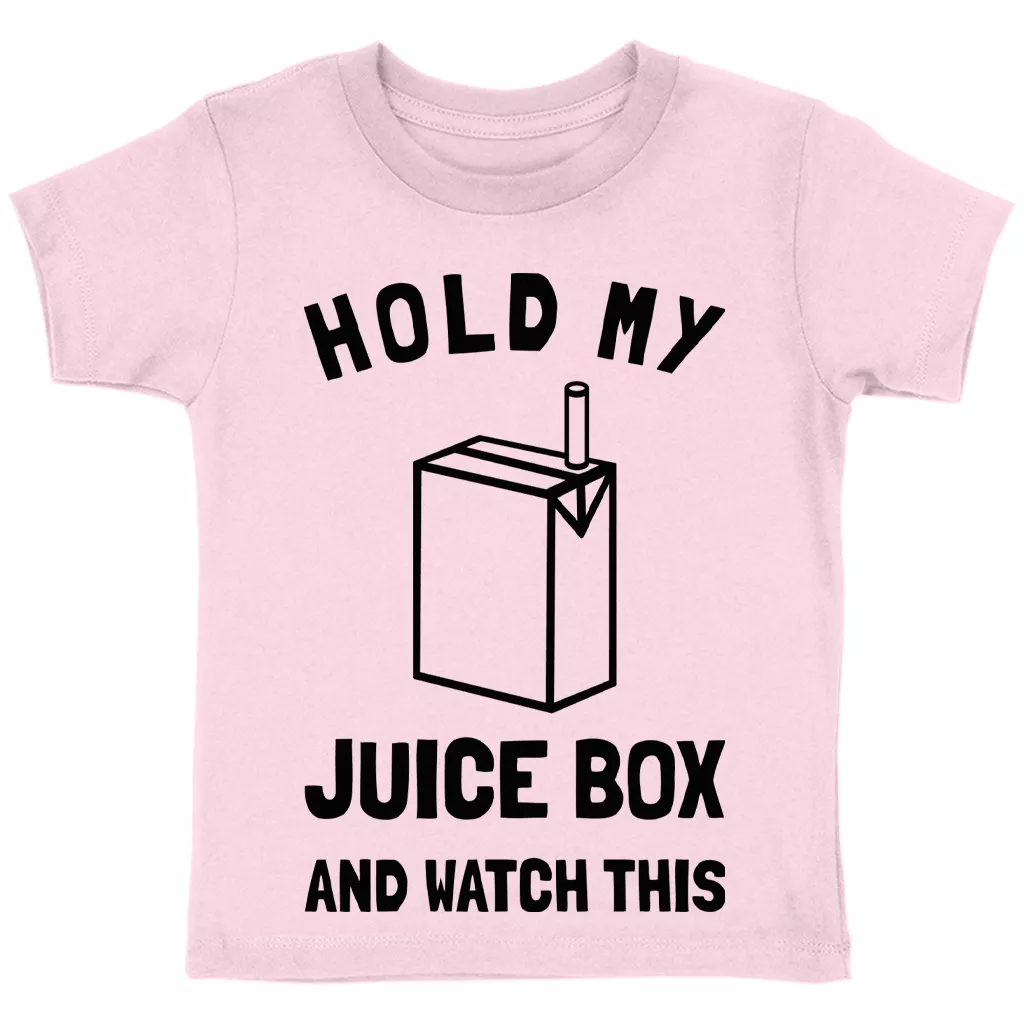 Hold My Juice Box and Watch This Toddler Cotton T-Shirt – Funny Graphic Short Sleeve Tee – Cute Print T-Shirt for Kids