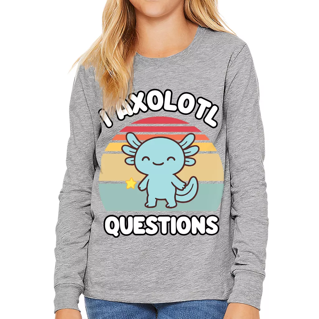 I Axolotl Questions Kids’ Long Sleeve T-Shirt – Axolotl Lover T-Shirt for Kids – Cute Axolotl Tee for Boys Girls