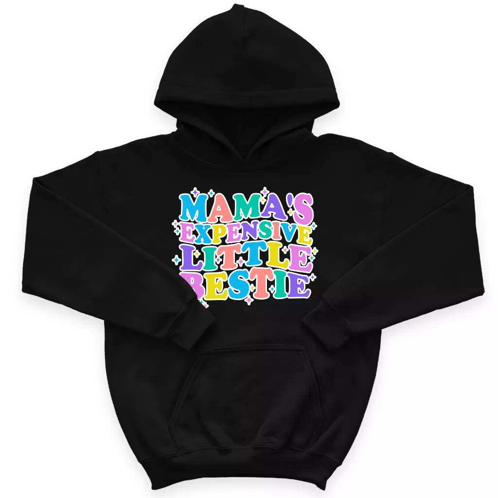 Mama’s Expensive Little Bestie Kids’ Hoodie – Little Bestie Hooded Sweatshirt – Cute Groovy Hoodie for Kids