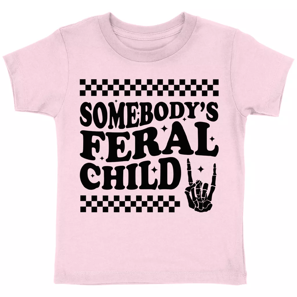 Somebody’s Feral Child Toddler Cotton T-Shirt – Wild Child Short Sleeve Tee – Funny Vintage T-Shirt for Kids