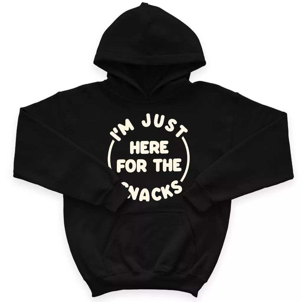 I’m Just Here for the Snacks Kids’ Hoodie – Foodie Hooded Sweatshirt – Funny Print Hoodie for Kids