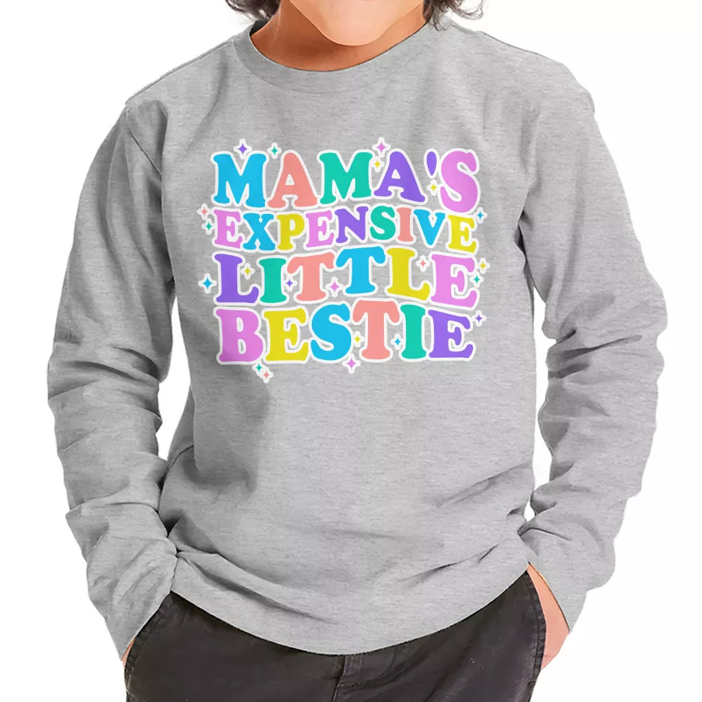 Mama’s Expensive Little Bestie Toddler Long Sleeve T-Shirt – Little Bestie Boy Girl Tee – Cute Groovy T-Shirt for Kids