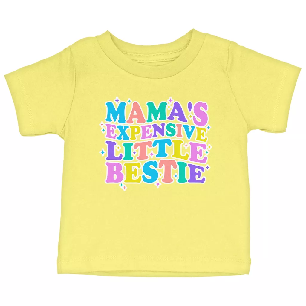Mama’s Expensive Little Bestie Baby T-Shirt – Cute Groovy T-Shirt for Kids – Little Bestie Short Sleeve Tee