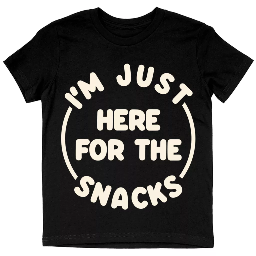 I’m Just Here for the Snacks Kids’ Cotton T-Shirt – Funny Print Short Sleeve Tee – Foodie T-Shirt for Kids