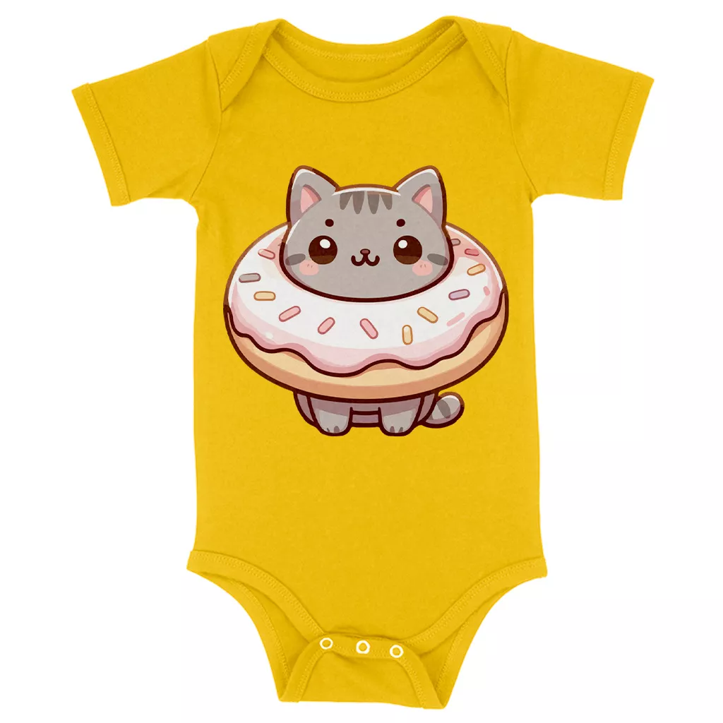 Donut Cat Baby Onesie – Kawaii Print Baby Bodysuit – Cute Design Baby One-Piece