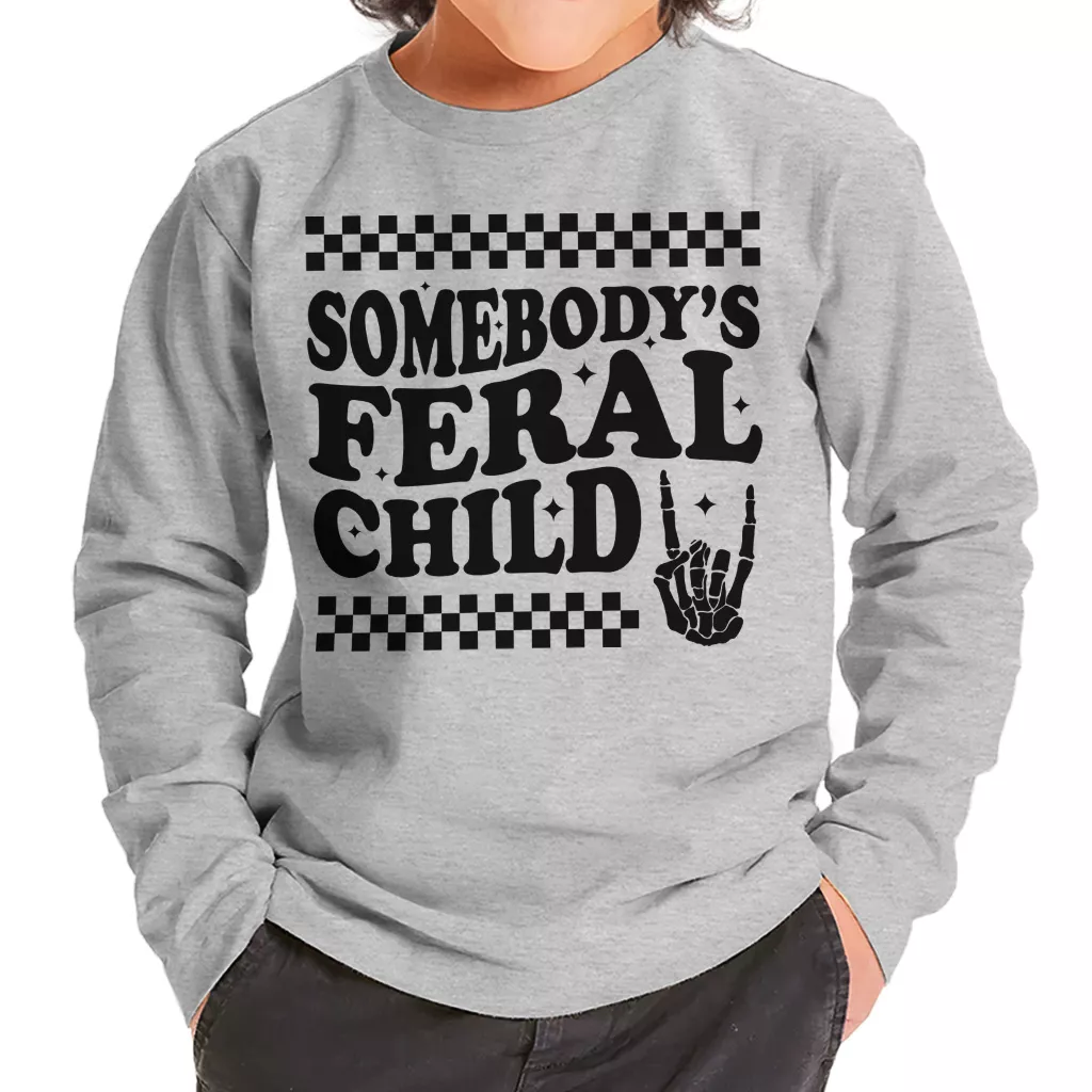 Somebody’s Feral Child Toddler Long Sleeve T-Shirt – Funny Vintage Boy Girl Tee – Wild Child T-Shirt for Kids