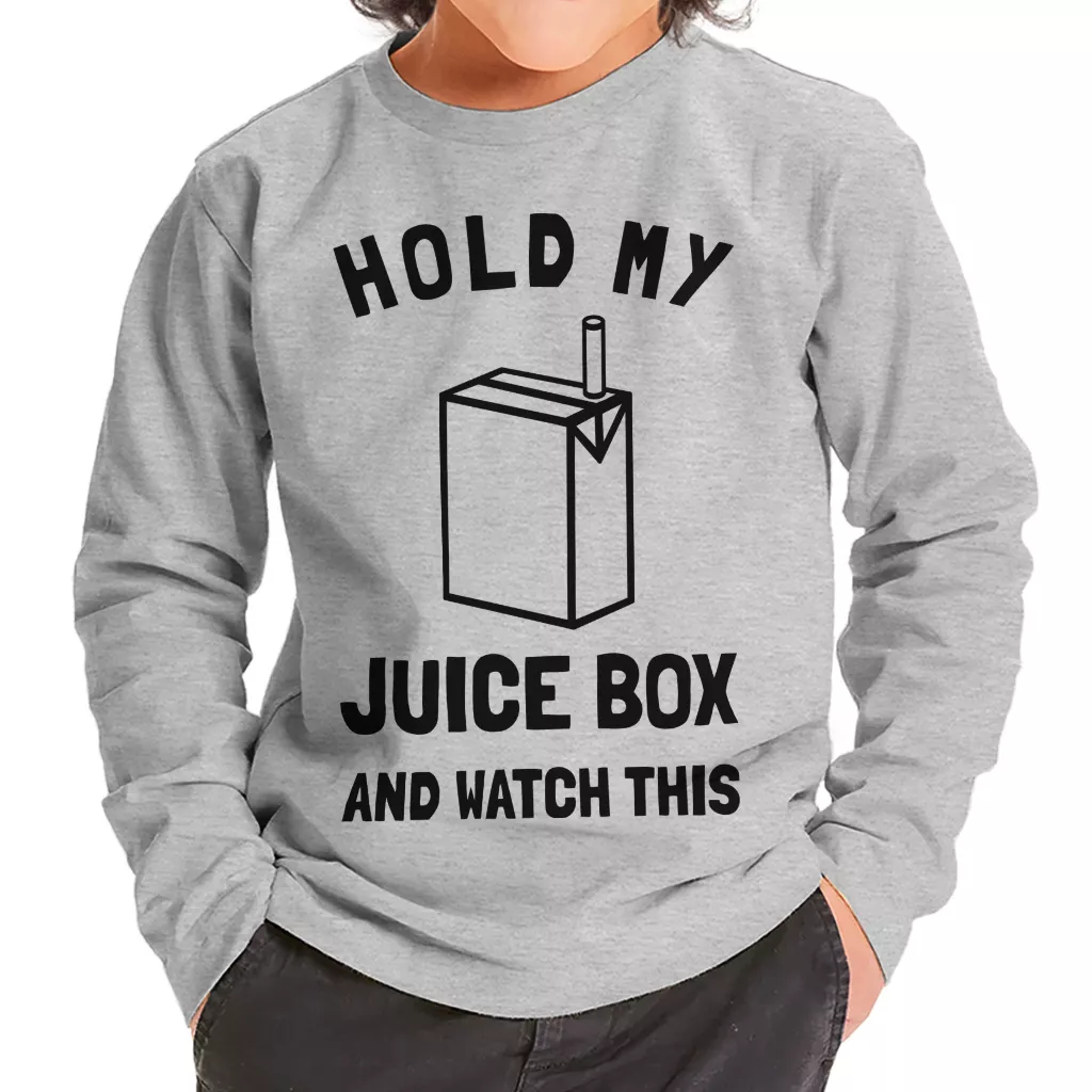 Hold My Juice Box and Watch This Toddler Long Sleeve T-Shirt – Funny Graphic Boy Girl Tee – Cute Print T-Shirt for Kids
