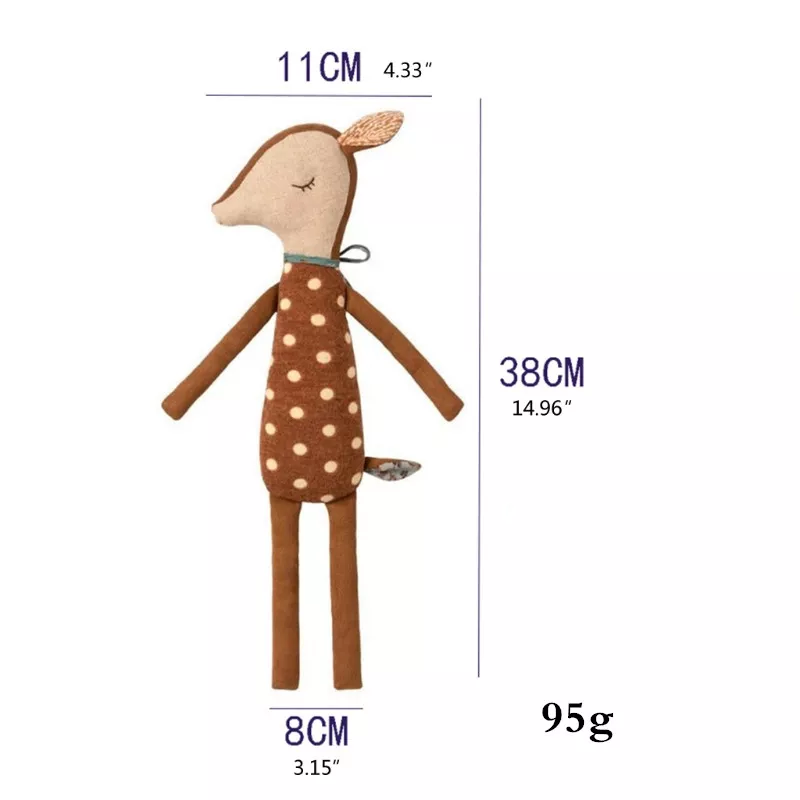 Made with wool and PP cotton, this deer plush toy is not only super soft but also completely safe. It’s eco-friendly, non-toxic, and free from any unpleasant odors, giving parents peace of mind while children cuddle and play. The fine-quality cloth exterior is smooth against delicate skin, and its sweet embroidered face adds charm and warmth. Standing approximately 14.96 inches tall with a head diameter of 4.3 inches and a width of 3.15 inches, it’s the perfect size for little hands to hold, hug, and explore.