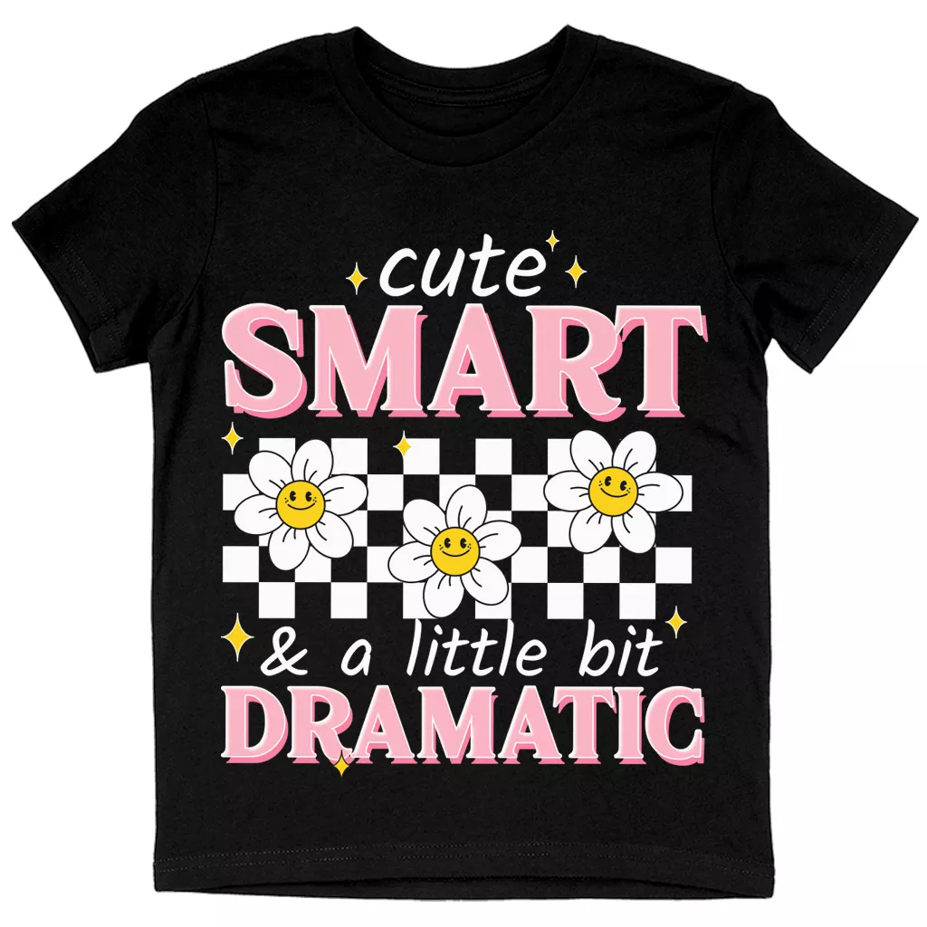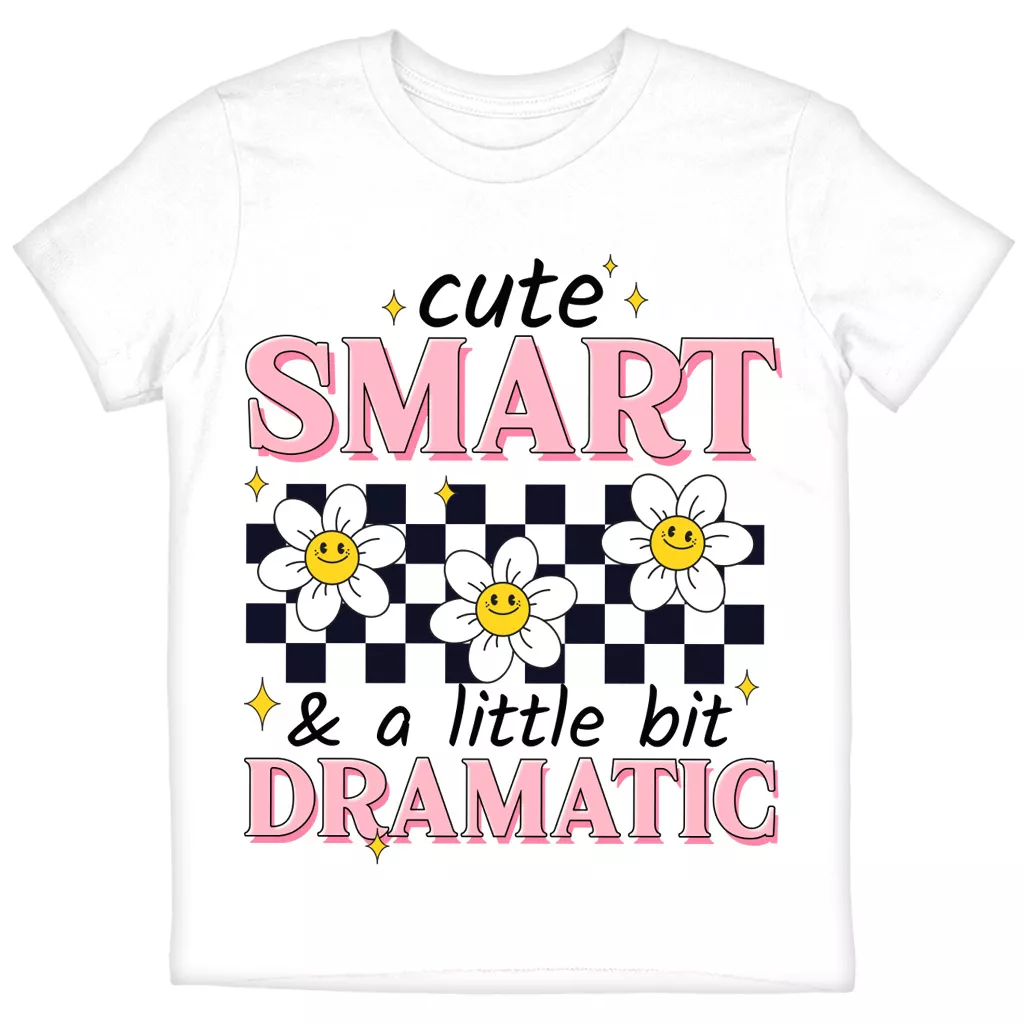 Cute Smart and A Little Bit Dramatic Kids’ Cotton T-Shirt – Trending Design Short Sleeve Tee – Floral Aesthetic T-Shirt for Kids
