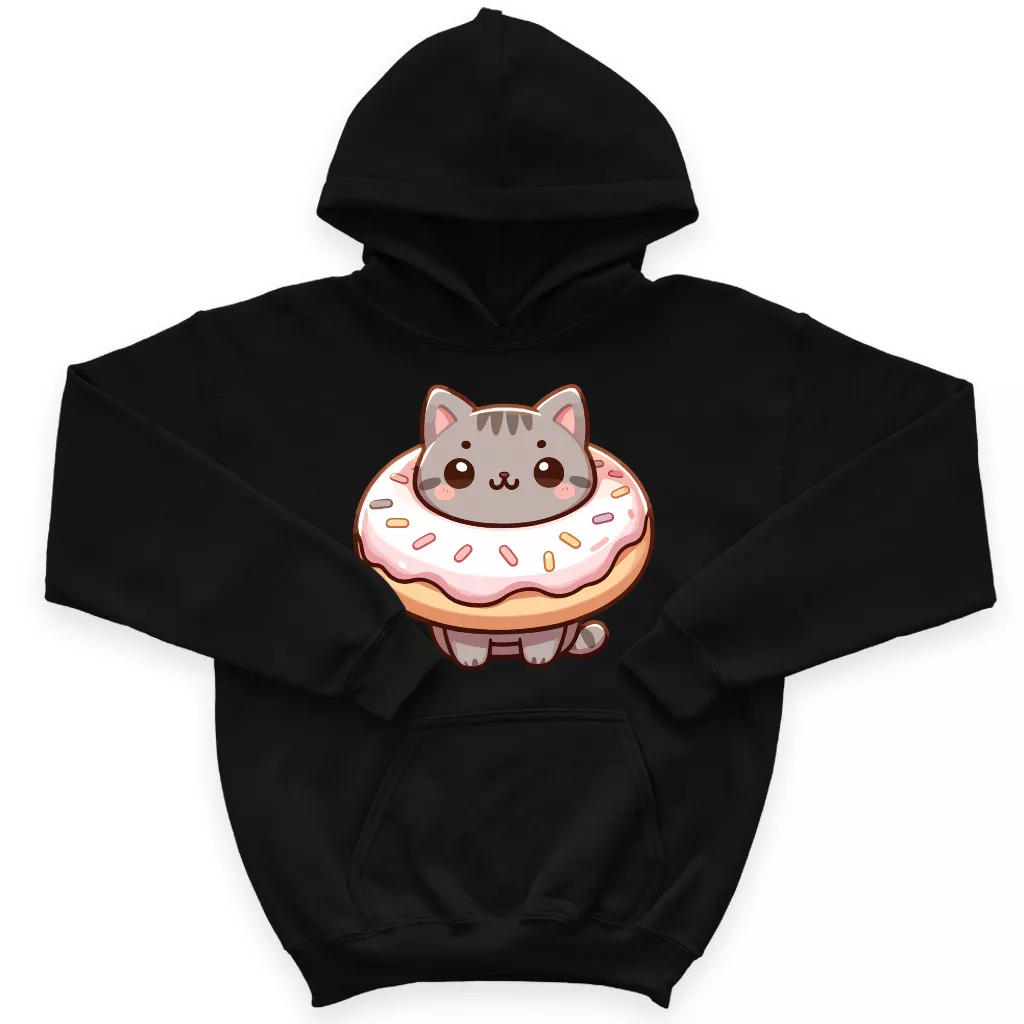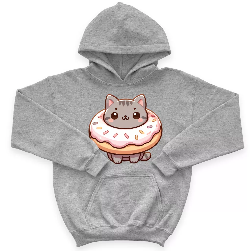 Donut Cat Kids’ Hoodie – Kawaii Print Hooded Sweatshirt – Cute Design Hoodie for Kids