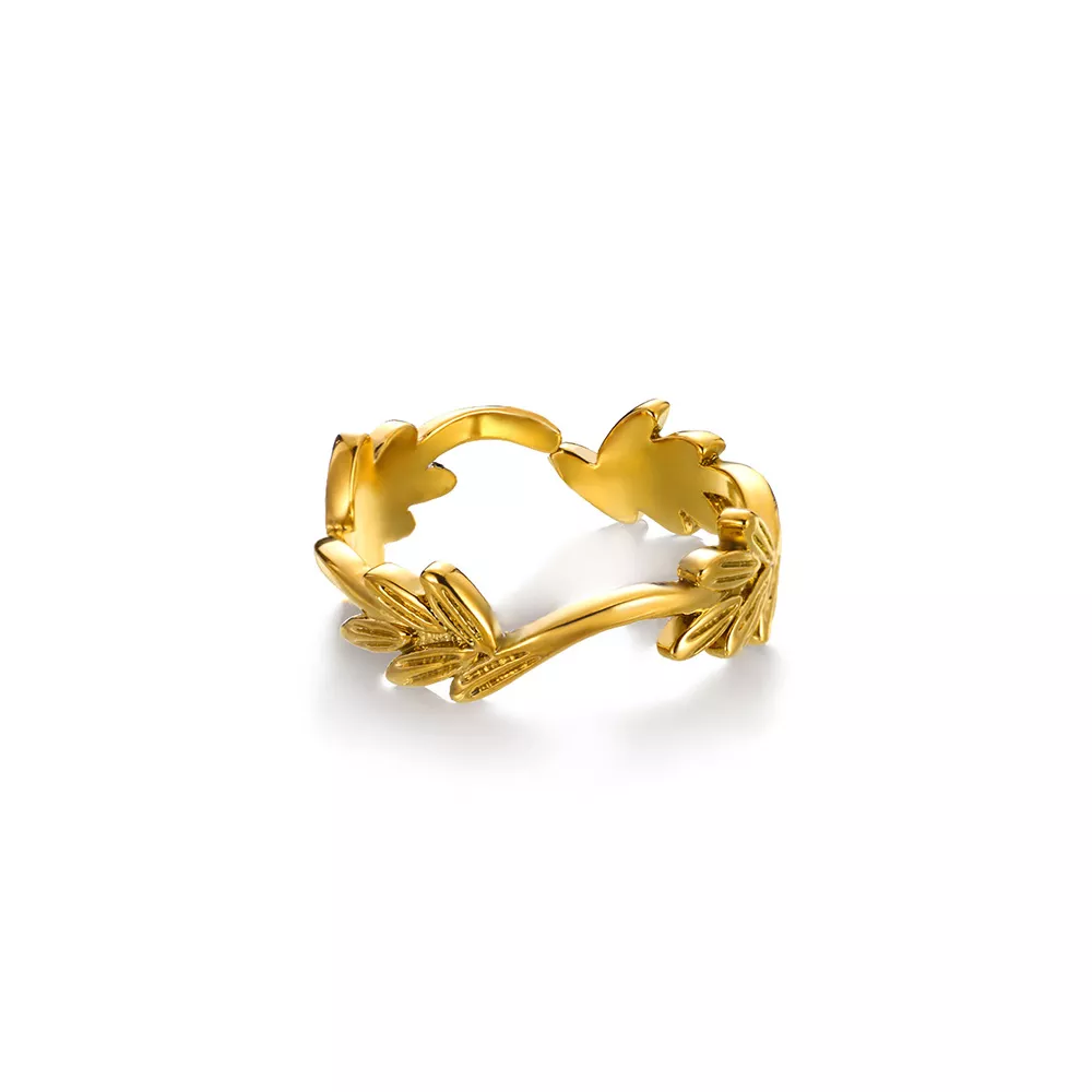 Elegant Gold Leaf Adjustable Ring for Women – 18K Plated Stainless Steel