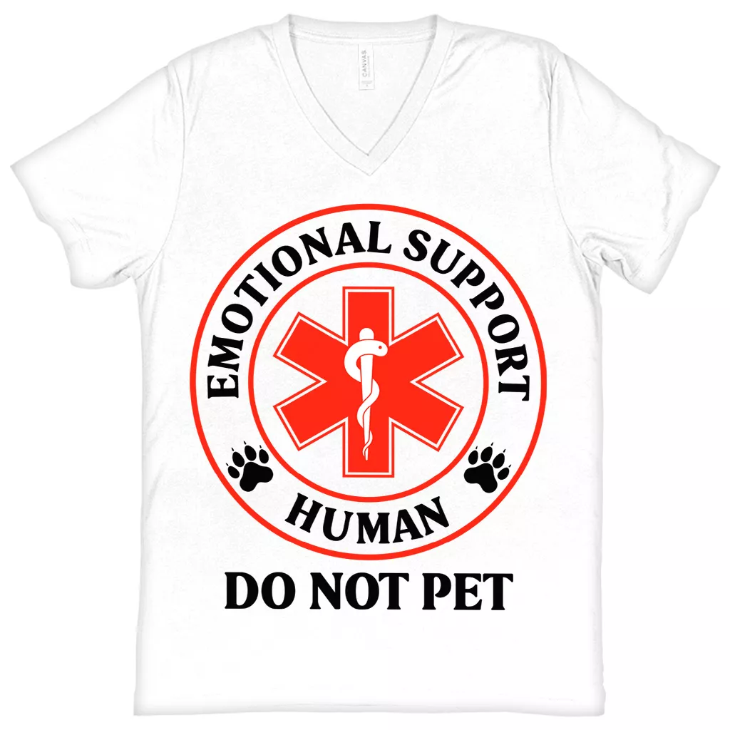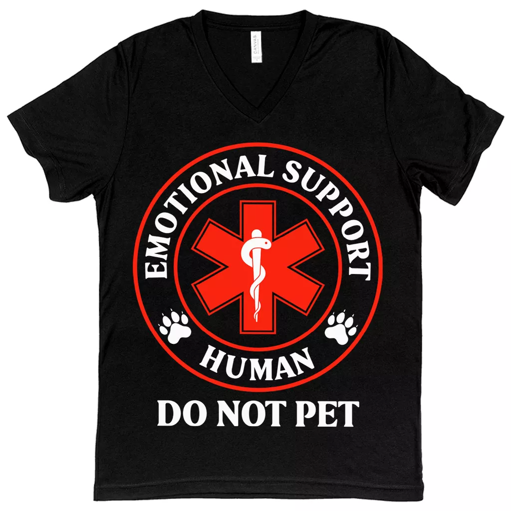 Emotional Support Human V-Neck T-Shirt – Pets Funny Basic T-Shirt – Love Humor Tee