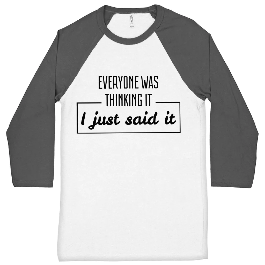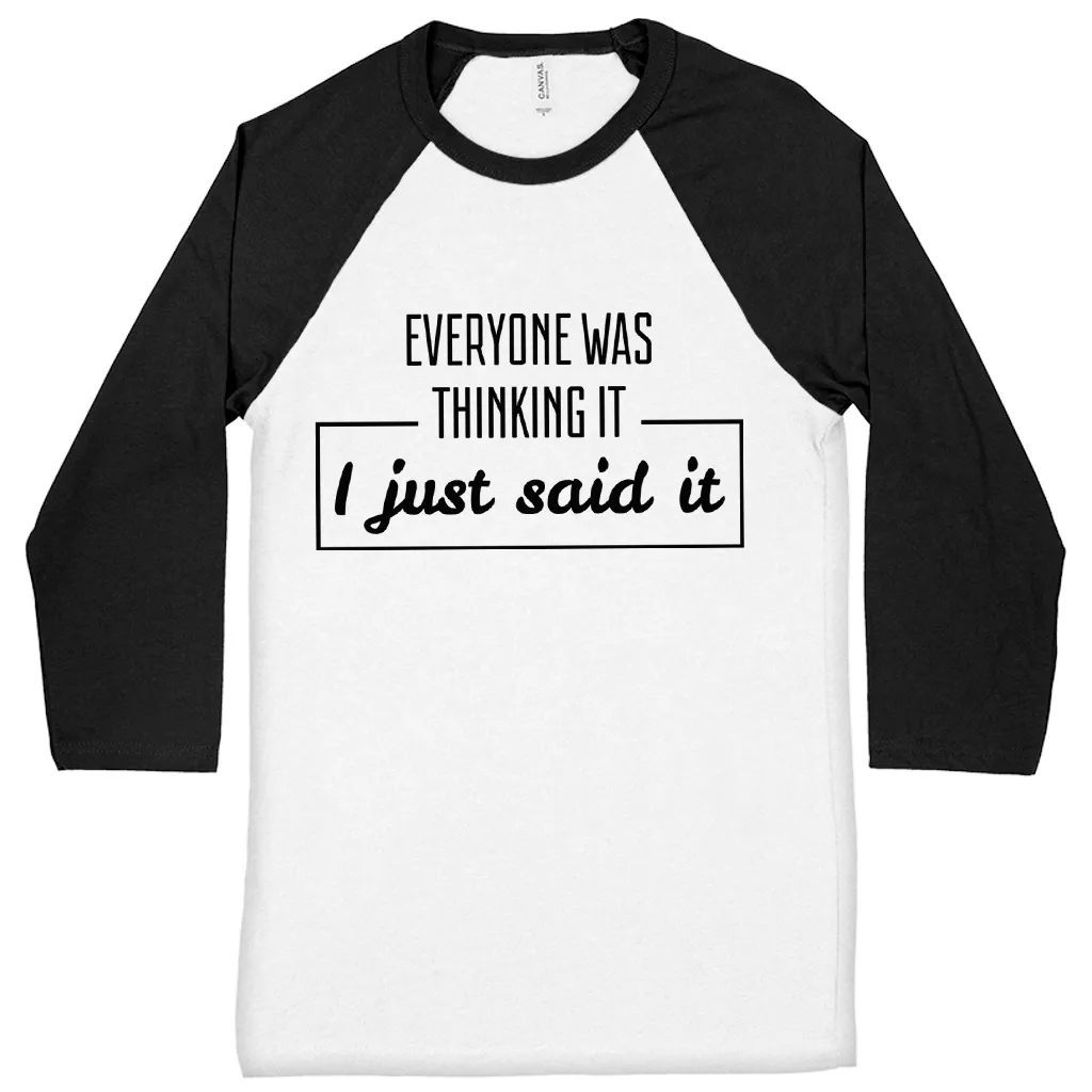 Everyone Was Thinking It I Just Said It Baseball T-Shirt – Funny Graphic 3/4 Sleeve – Sarcastic Quote Raglan Jersey Shirt