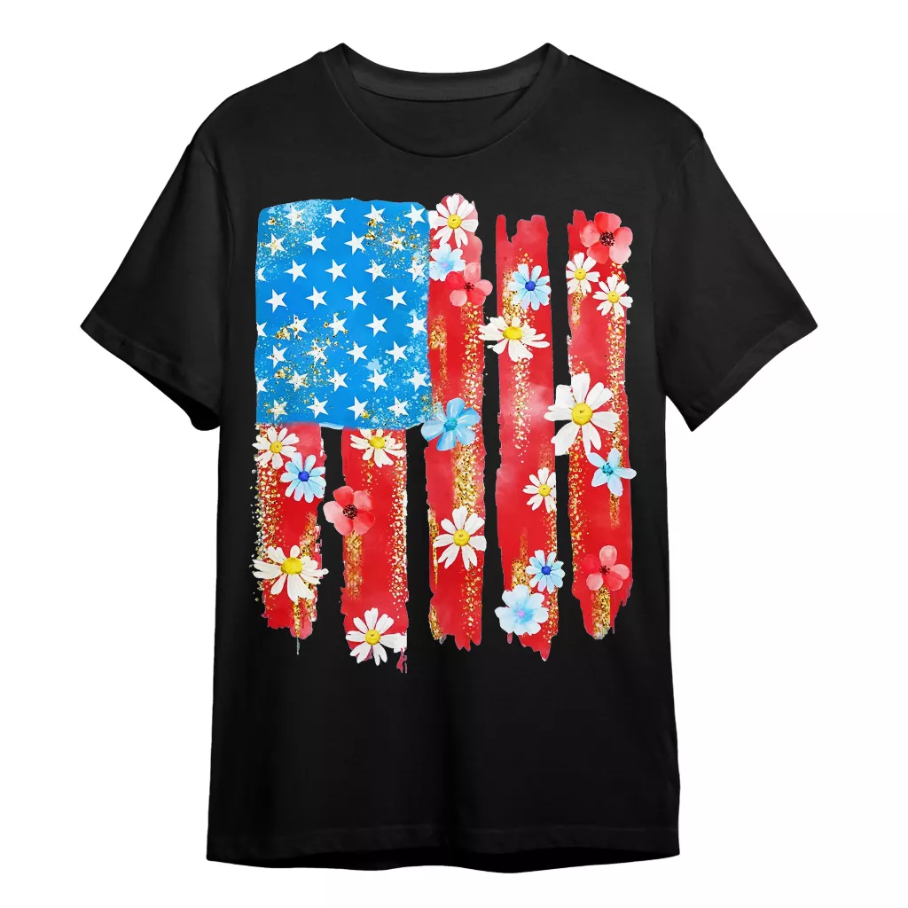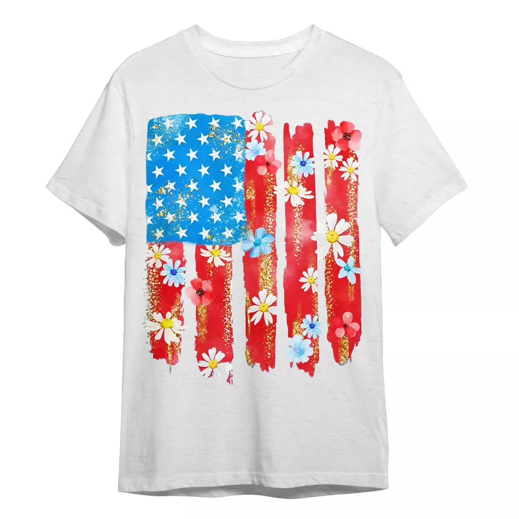 Floral American Flag T-Shirt – Patriotic Graphic Heavy Cotton Tee – 4th Of July Shirt
