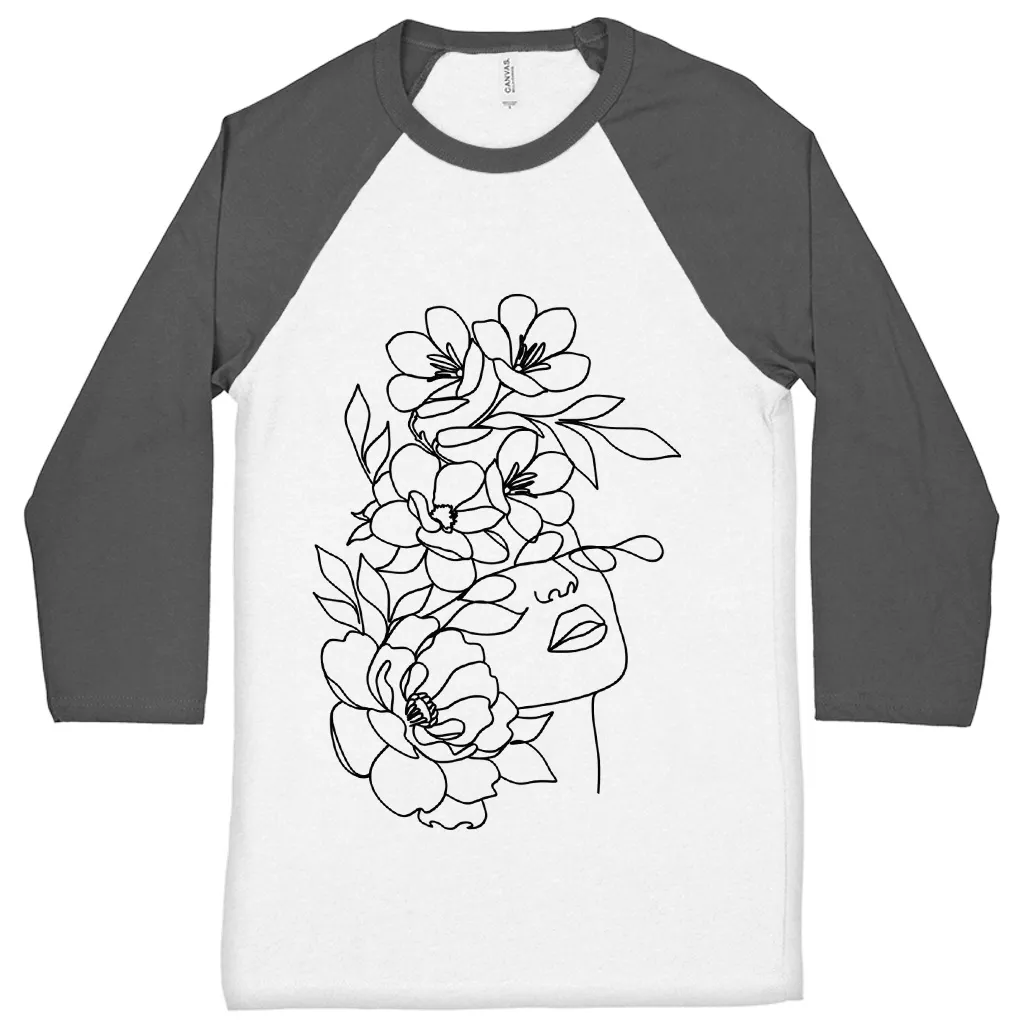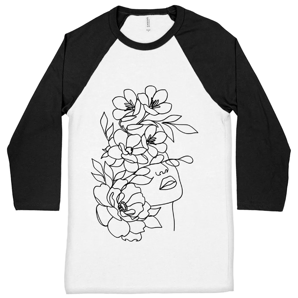 Floral line face Baseball T-Shirt – Outline graphic 3/4 Sleeve – Flowers print Raglan Jersey Shirt