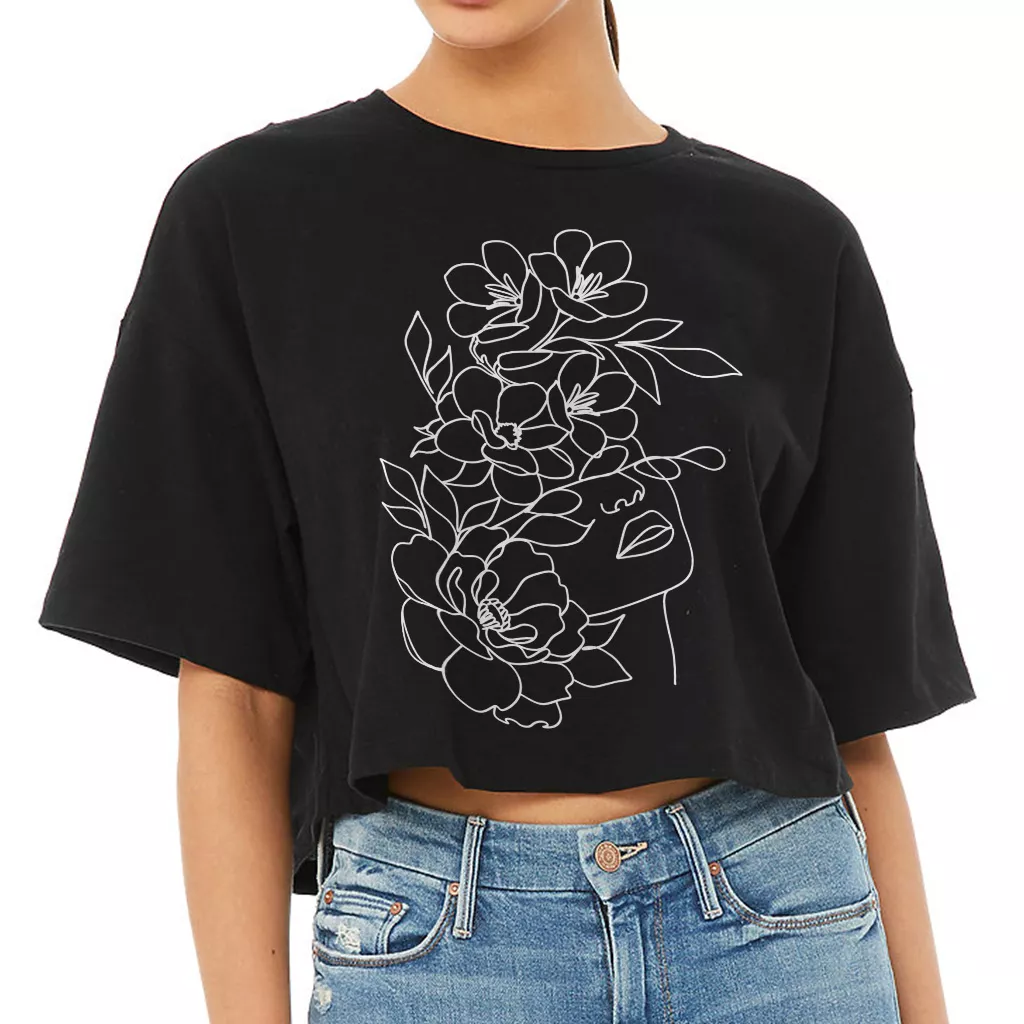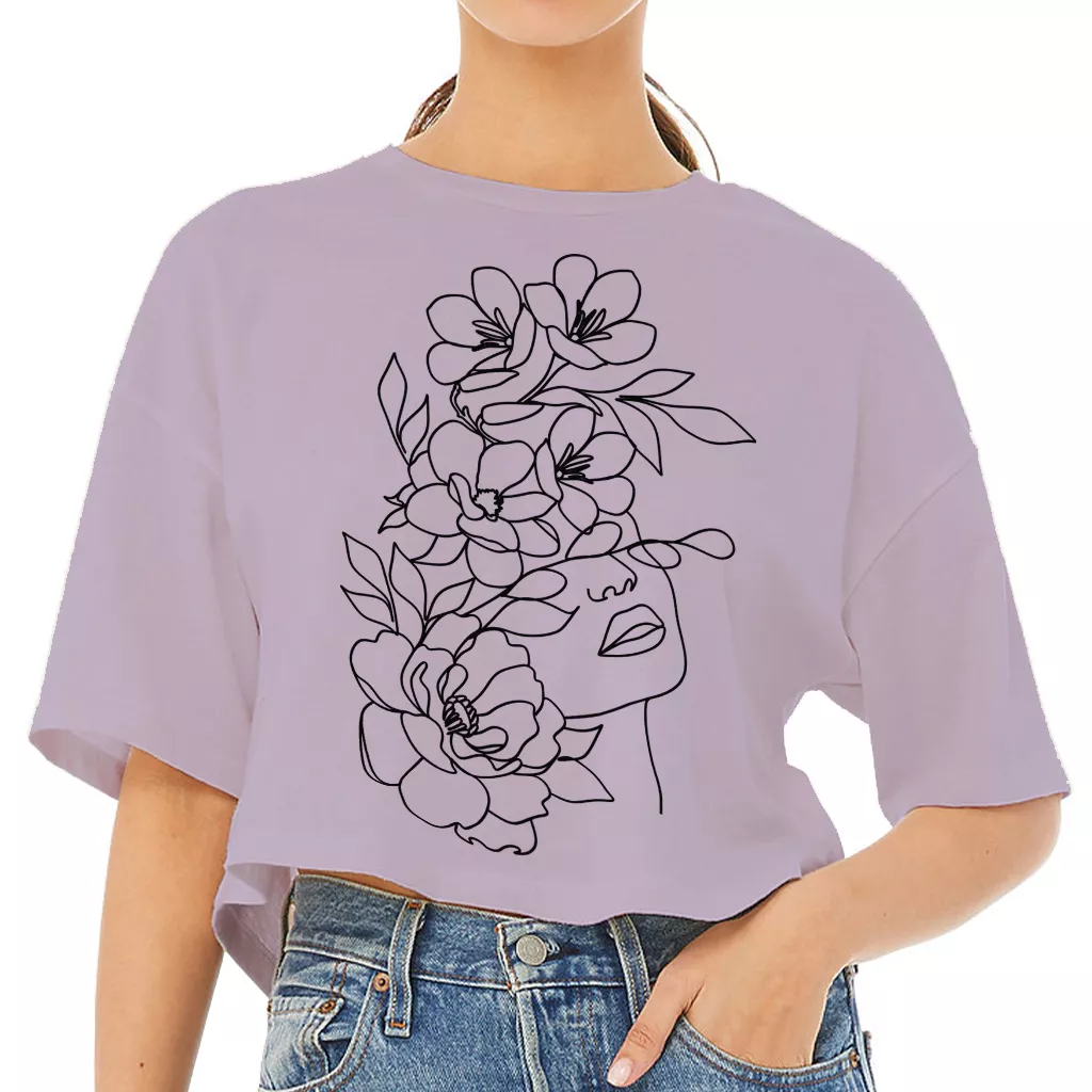 Floral line face Cropped T-Shirt – Outline graphic Trendy Tee – Flowers print Women’s Basic T-Shirt