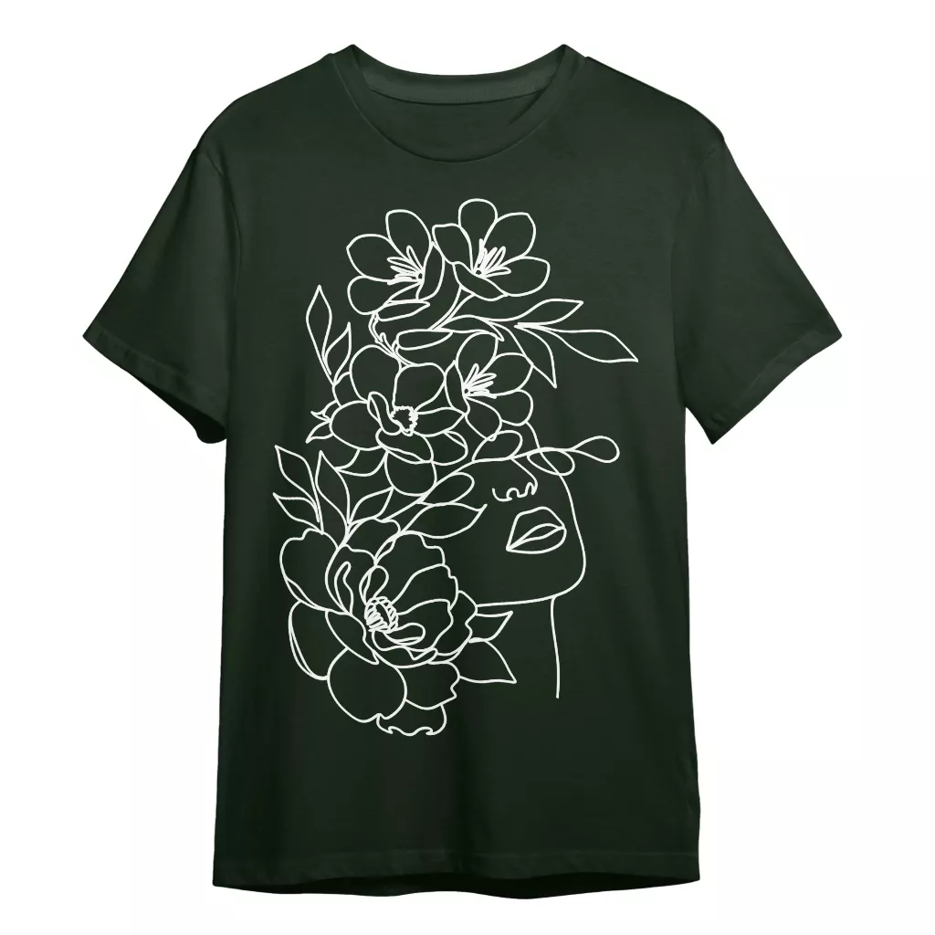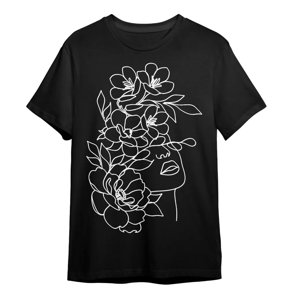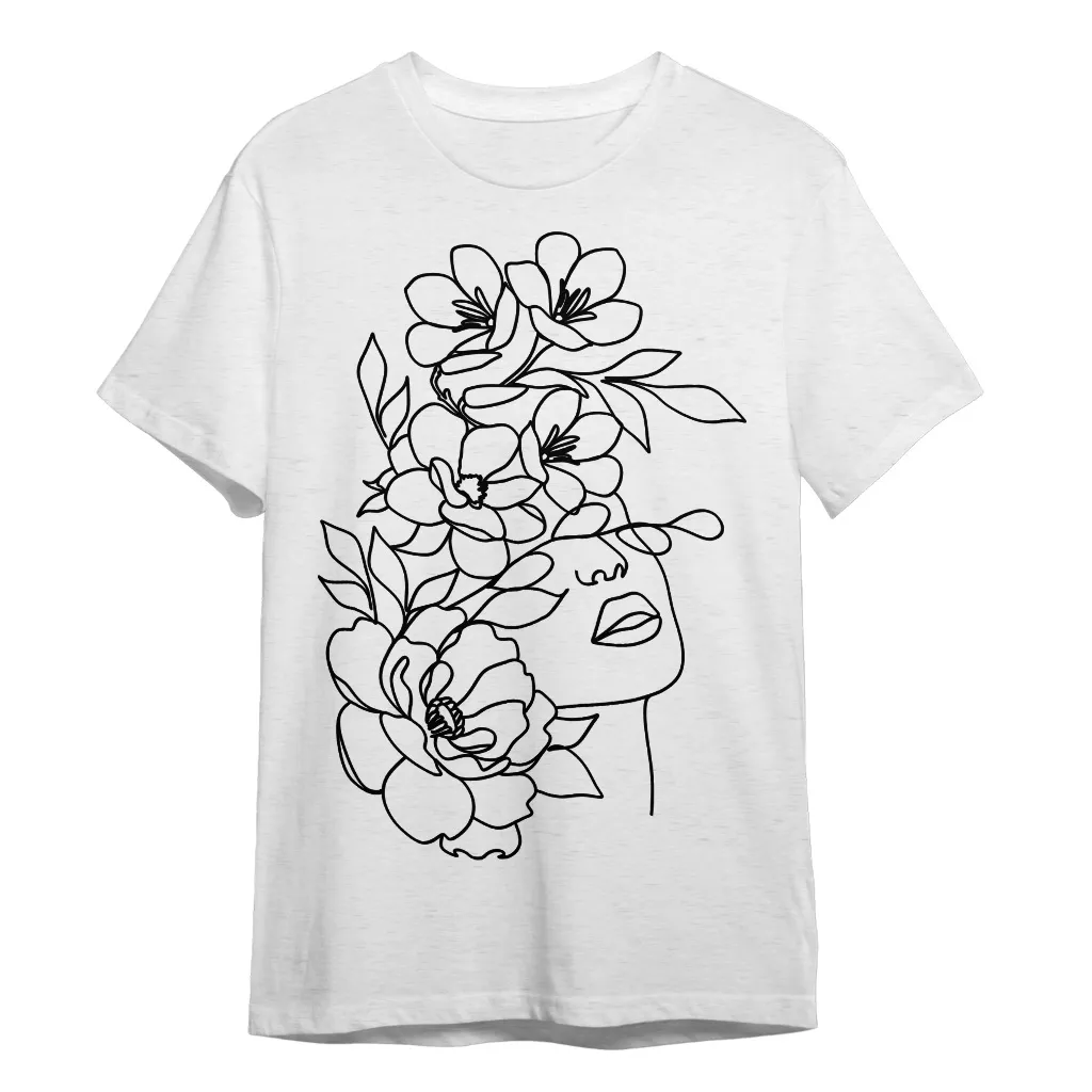 Floral line face T-Shirt – Outline graphic Heavy Cotton Tee – Flowers print Shirt