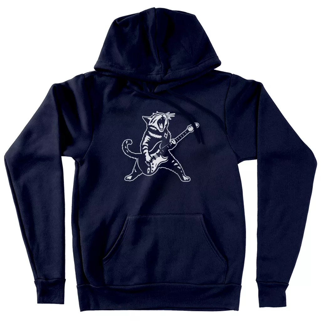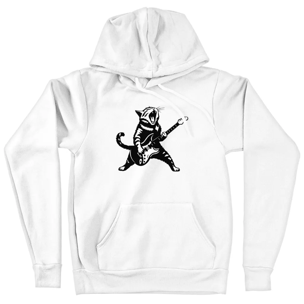 Funny Guitar Cat Hoodie – Cat Themed Gift Hooded Sweatshirt – Cool Cat Print Unisex Hoodie