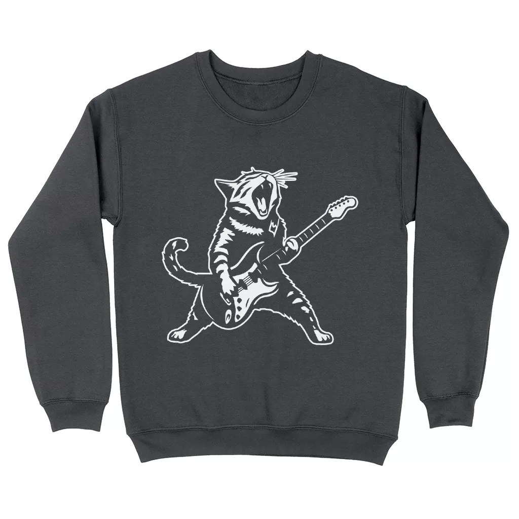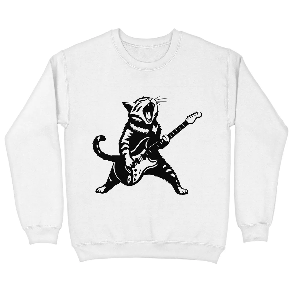Funny Guitar Cat Sweatshirt – Cat Themed Gift Crewneck Sweatshirt – Cool Cat Print Unisex Sweatshirt