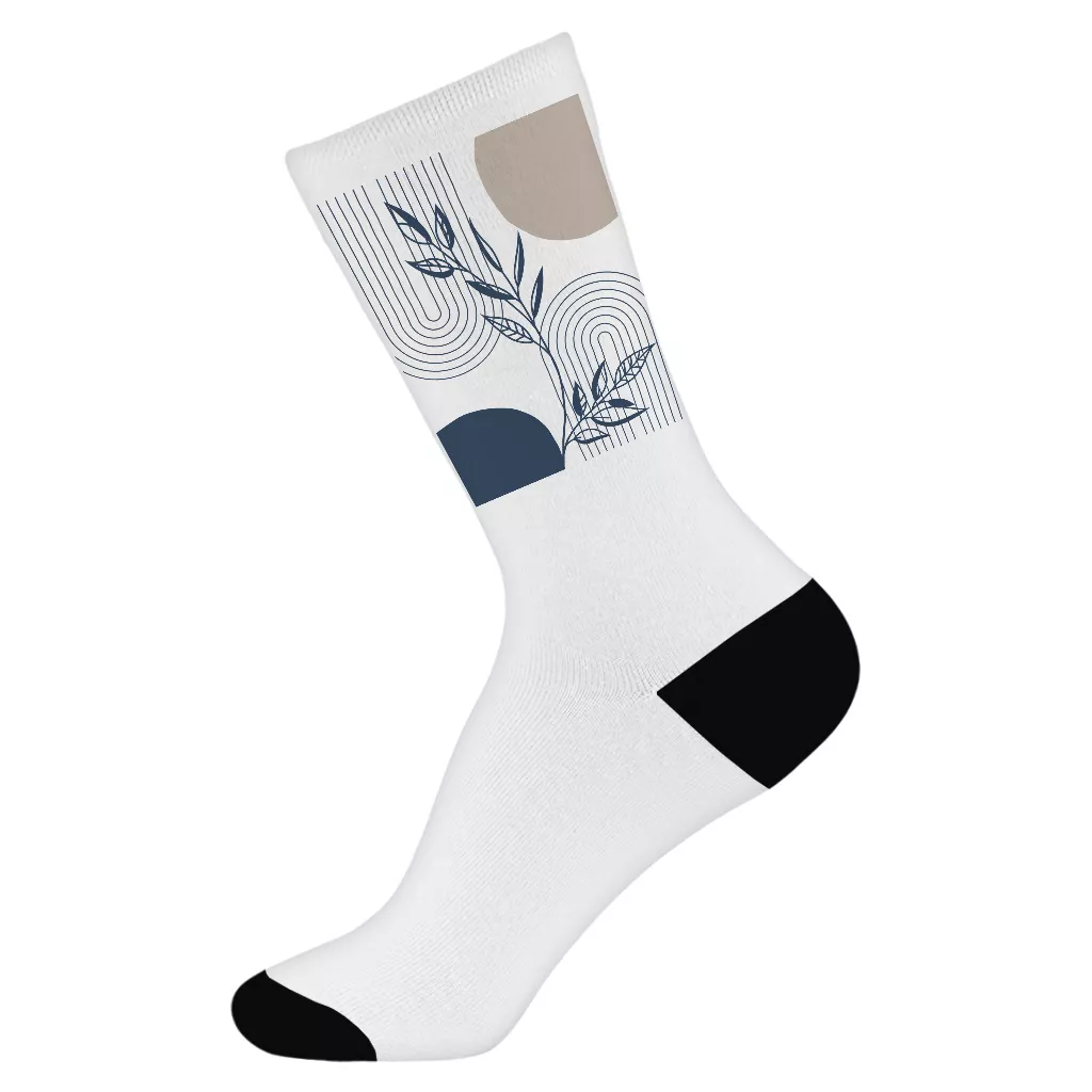 Boho Botanical Unisex Socks – Abstract Line Socks – Mid Century Design Crew Socks