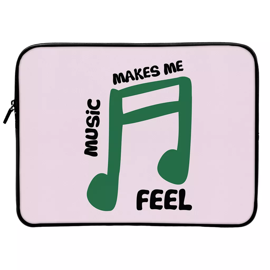 Music Makes Me Feel Laptop Sleeve 12-15 inch – Aesthetic Print Carrying Case Cover for MacBook – Retro Trendy Dell, Asus, HP Laptop Sleeve