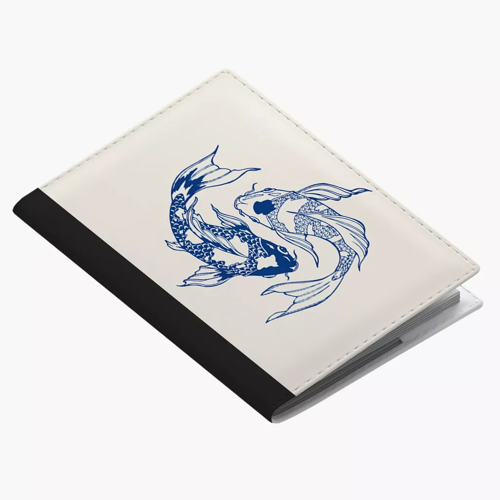 Blue Koi Passport Cover – Japanese Graphic Passport Book Holders for Women and Men – Vintage Trendy Travel Must Haves Accessories