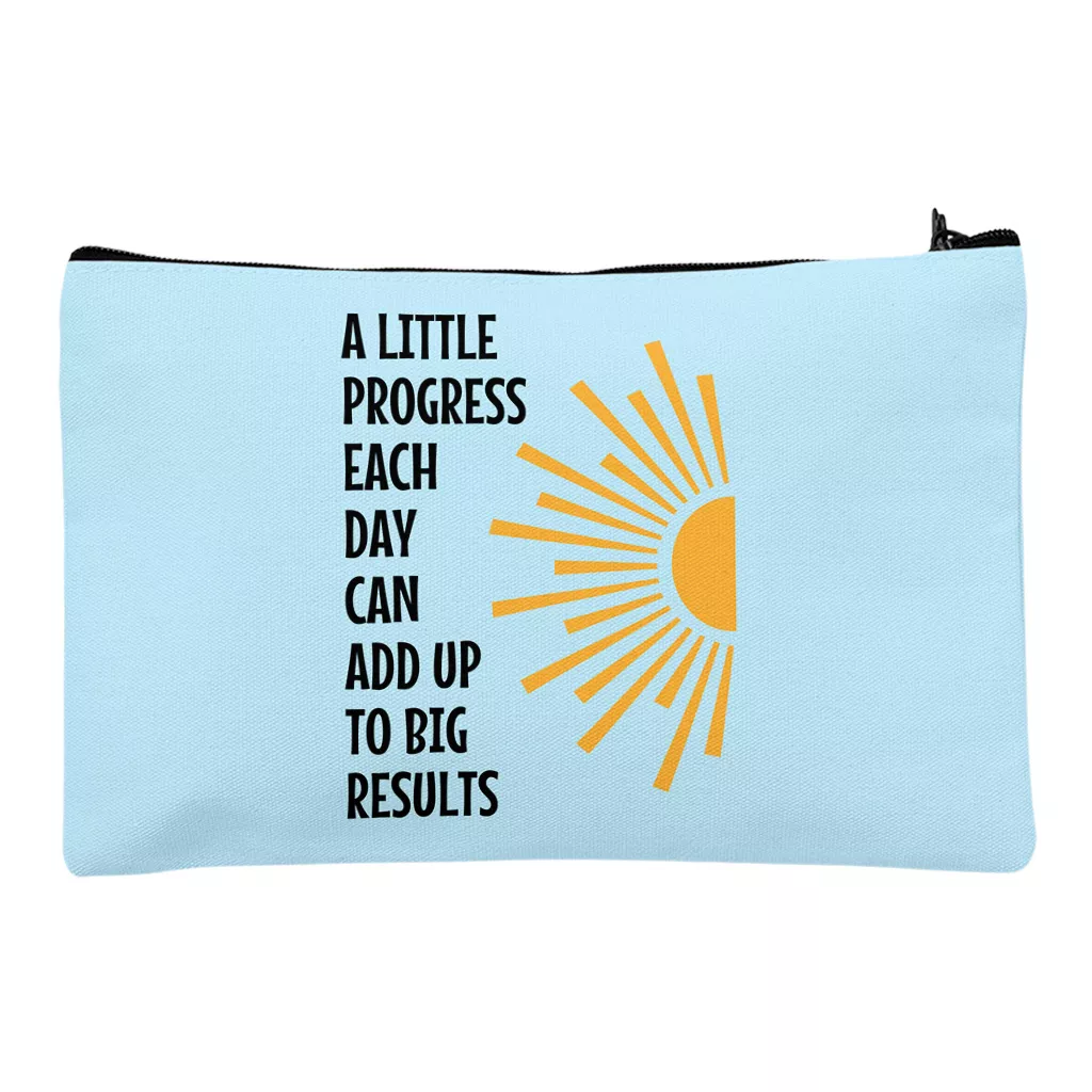 A Little Progress Each Day Can Add Up To Big Results Travel Makeup Bag – Mental Health Accessory Pouch