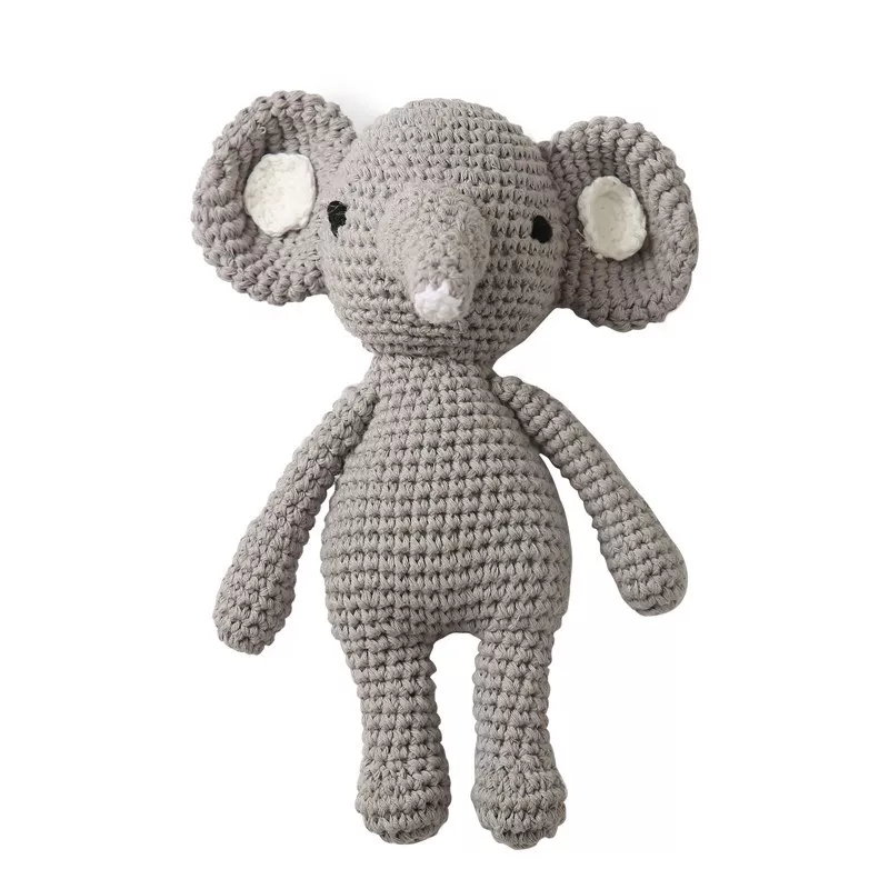 Handmade Crochet Elephant Rattle Toy – Soft Plush Teether for Babies