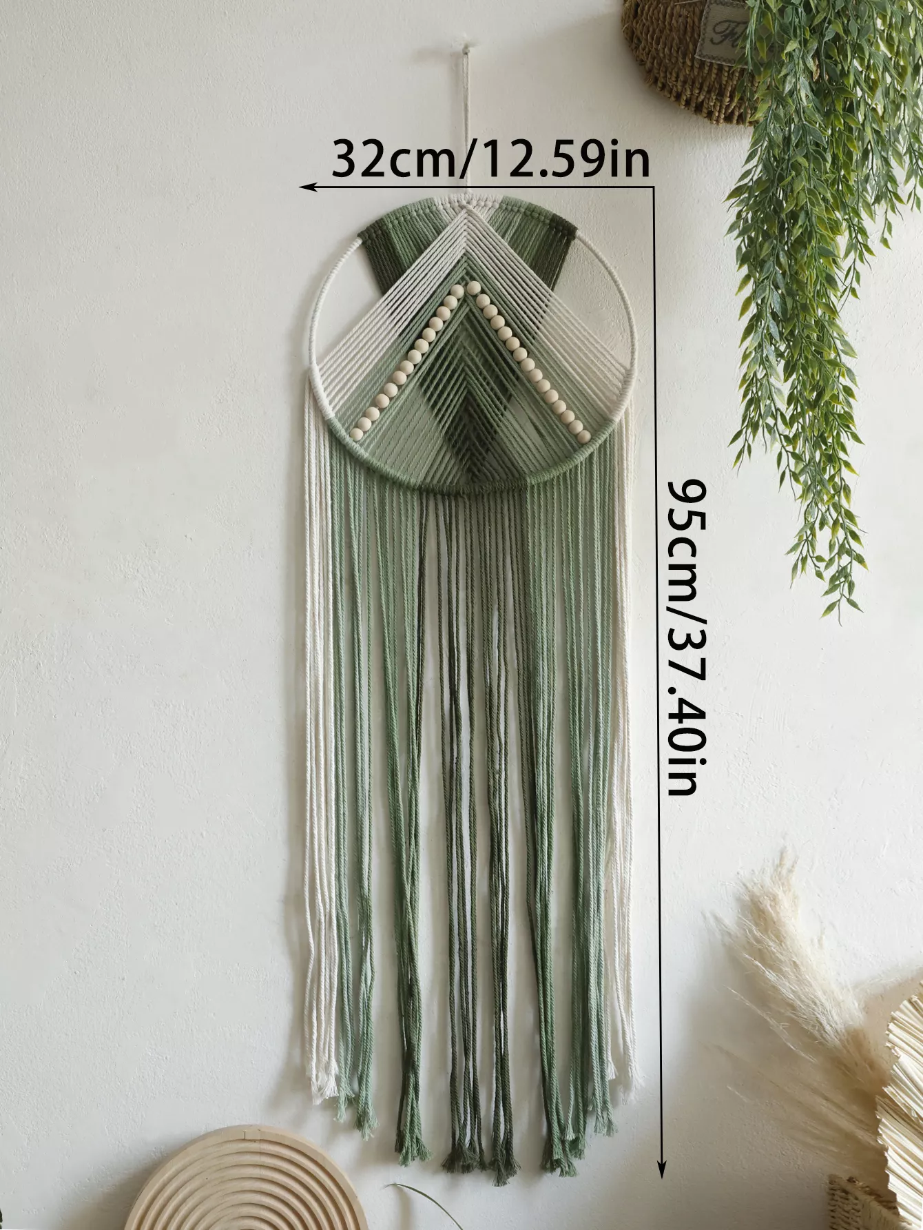 Add a touch of natural elegance and bohemian charm to your home with this stunning Handmade Macrame Wall Hanging. Expertly crafted with intricate knotting, fringe details, and wooden beads, this tapestry is a beautiful and sustainable addition to any living room, bedroom, or nursery. Designed to be a focal point in your home, it brings warmth, texture, and a personalized touch to your space.