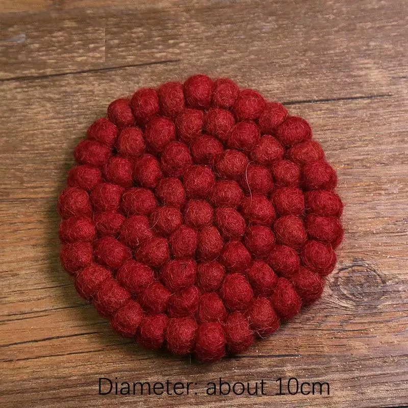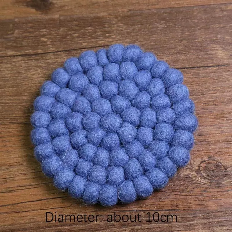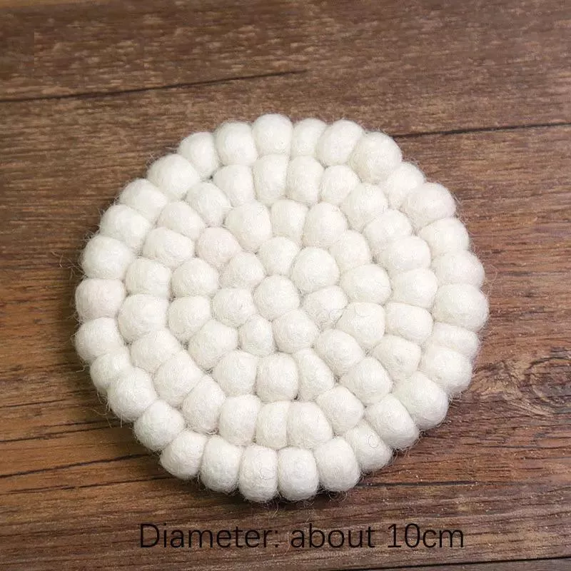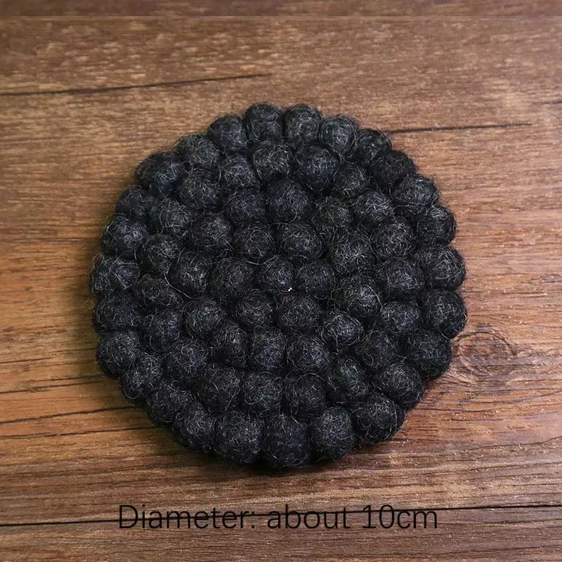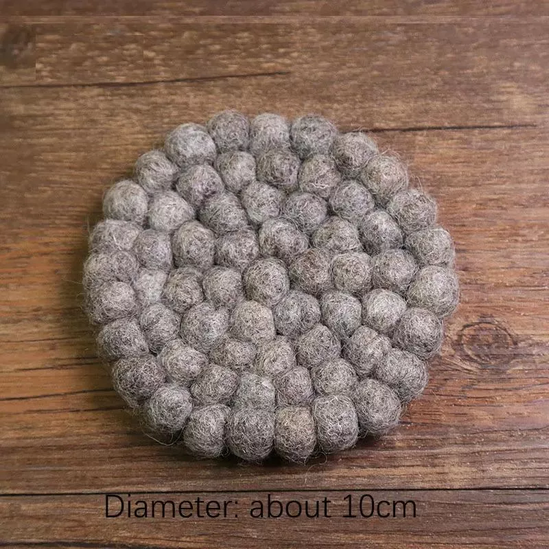 These coasters are more than just functional; they are a statement of style and sustainability. The soft yet sturdy wool balls provide an attractive texture that complements any home décor, from modern to rustic. Their natural heat-insulating properties make them perfect for protecting your table or countertop from the heat of your drink. Additionally, they’re absorbent enough to soak up any condensation, ensuring your surfaces stay dry.