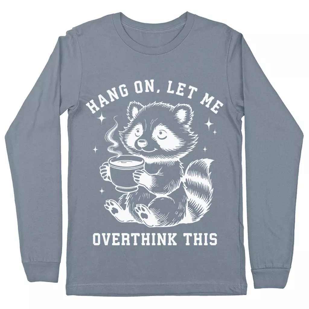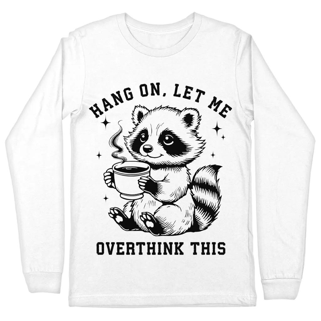 Hang On Let Me Overthink This Long Sleeve T-Shirt – Funny Racoon T-Shirt – Trash Panda Print Basic Tee