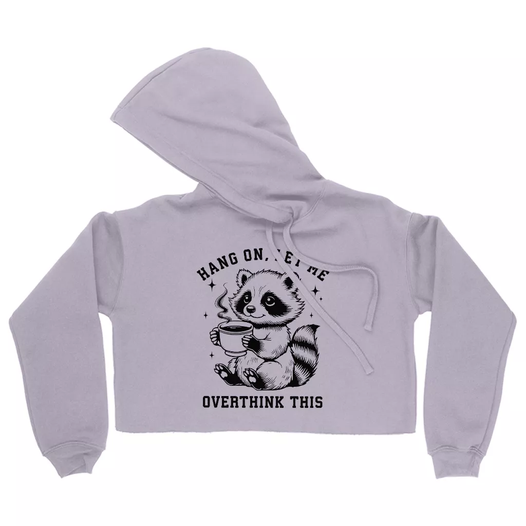 Hang On Let Me Overthink This Women’s Cropped Hoodie – Funny Racoon Hooded Sweatshirt – Trash Panda Print Super Crop Top Hoodies
